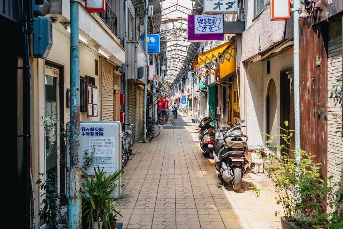 中津商店街は大阪の中心街・梅田から一駅、徒歩でも10分ほどのところにある、昔ながらの風情が残る商店街です。現在3割ほどが空き店舗となっていますが、近年は従来の店舗跡に現代的な感性をもつ個性的な店舗が新しくオープンし、徐々に注目を集めています。