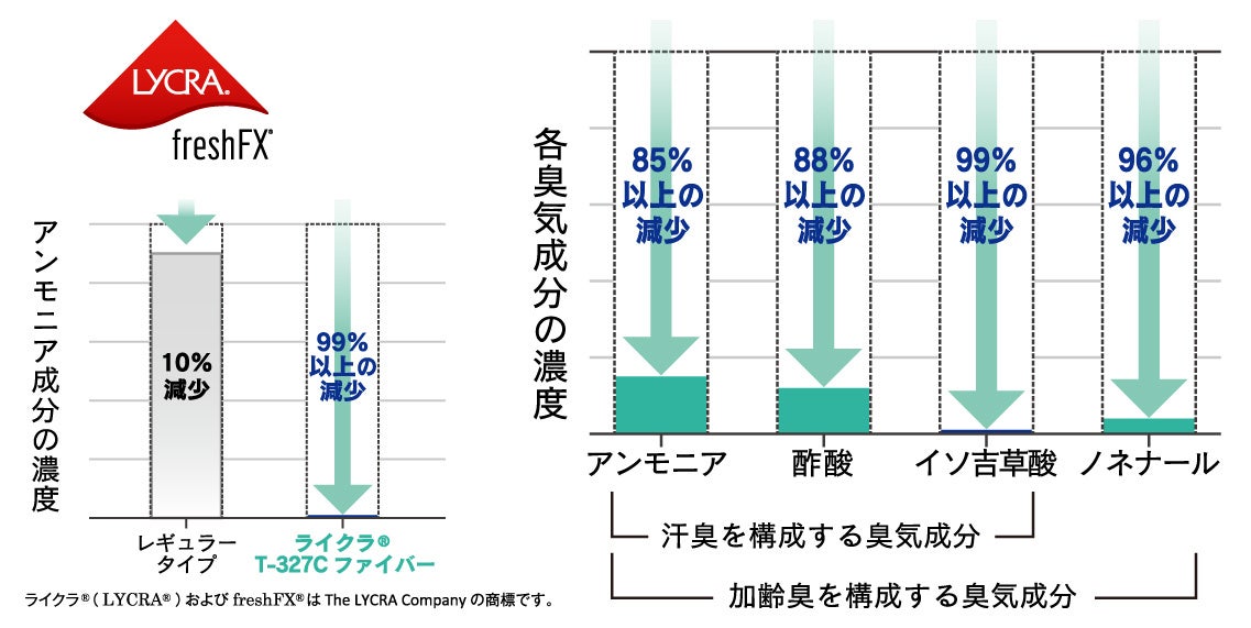 生地全体に、消臭機能を持つライクラ®fresh FX®ファイバーを使用しています。