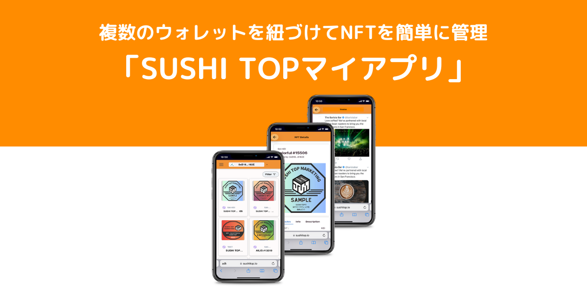 SUSHI TOP MARKETING、複数のウォレットを紐づけてNFTを簡単に管理できる「SUSHI TOPマイアプリ」をリリース