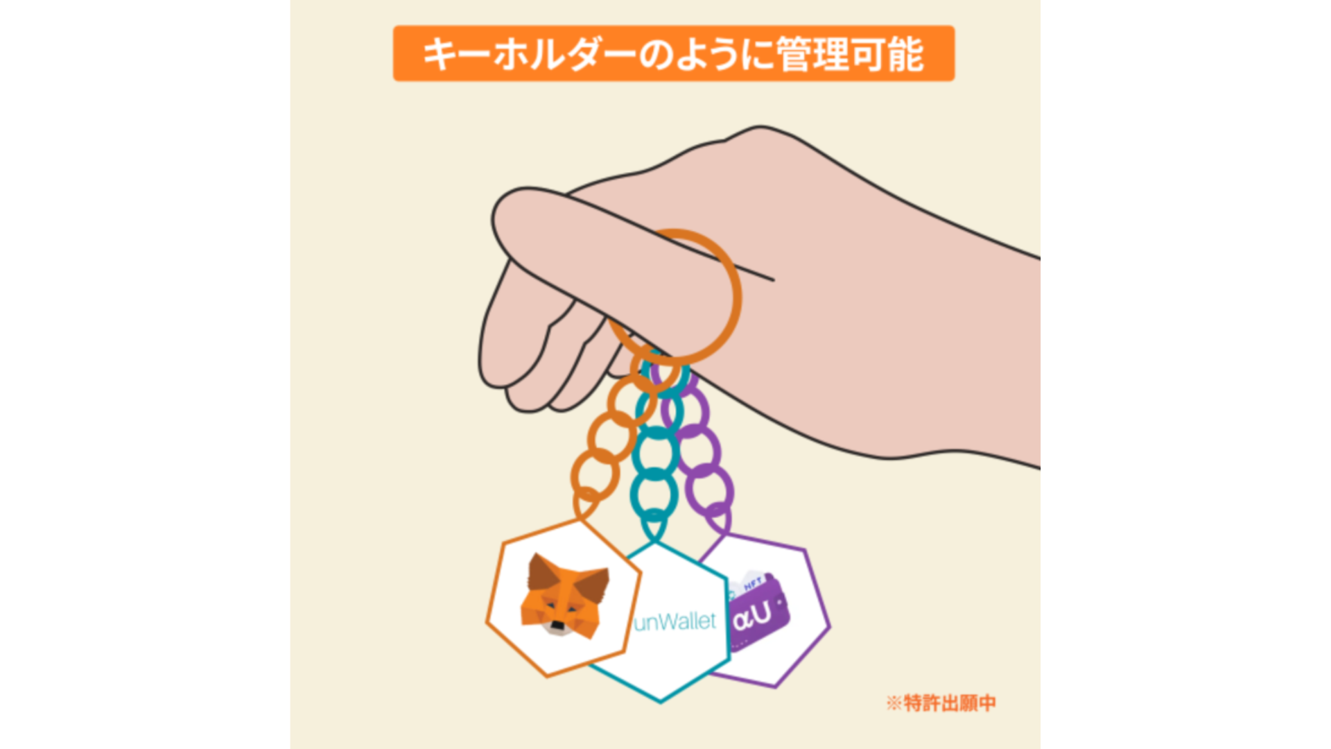 MetaMask、unWallet、αU Walletなどの複数のウォレットを接続し、キーホルダーのようにまとめて管理できるため、取得したNFTをいつでも簡単に確認できます。(特許出願中)