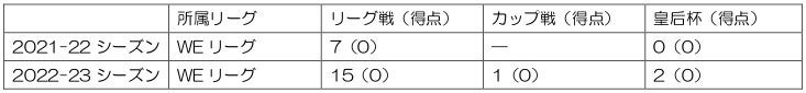 ■経歴 :FCファルコン ― 高槻ピンキーズ ― FCヴィトーリア ― スペランツァ大阪高槻 ― 伊賀FCくノ一三重 ― ノジマステラ神奈川相模原