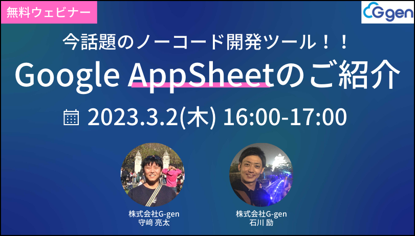 株式会社G-gen、無料ウェビナー「今話題のノーコード開発ツール!!〜Google・AppSheetのご紹介〜」を実施
