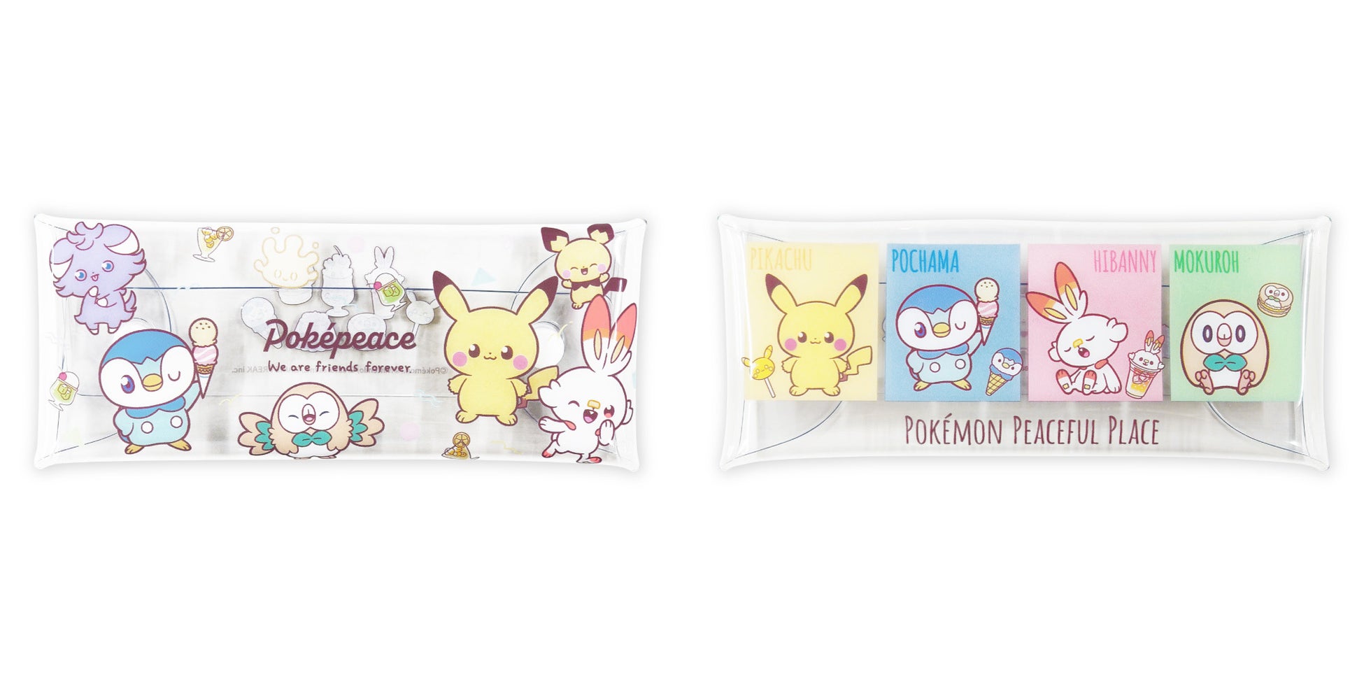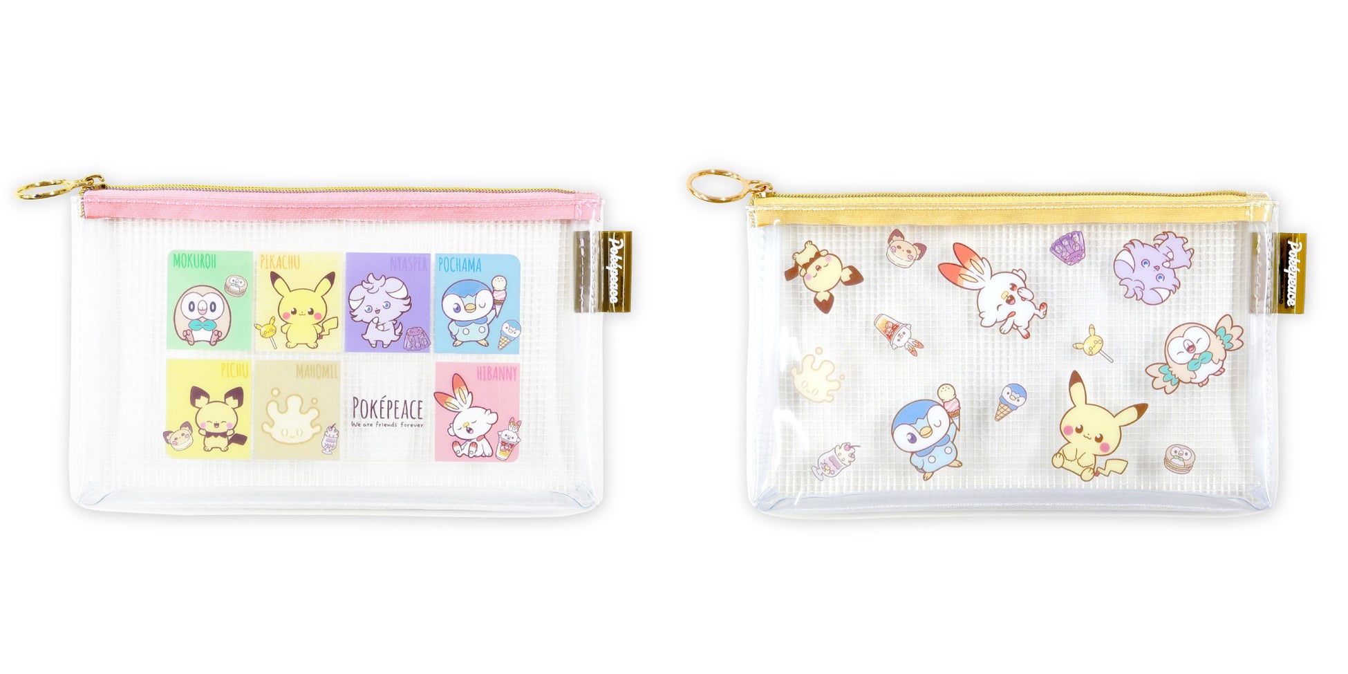 (左から)◆クリアマルチケースS ピカチュウ&ポッチャマ/クリアマルチケースS 集合 各825円(税込)