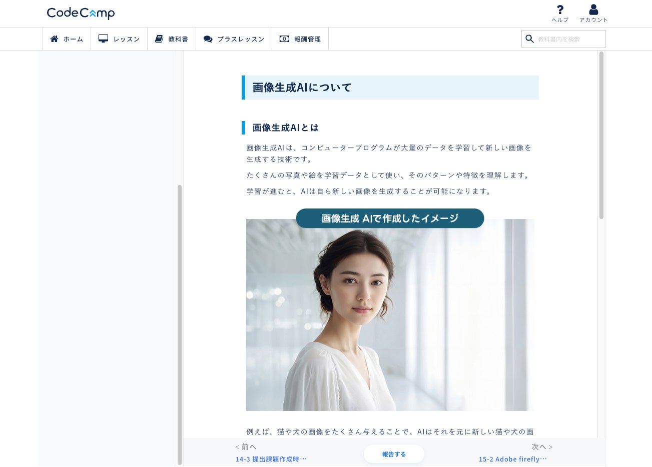 教科書15章にて昨今話題となっている画像生成AIツール「Adobe Firefly」の解説を提供します。3種類の自動生成機能を学習し、受講者が実務に応用する方法を学ぶことができます。