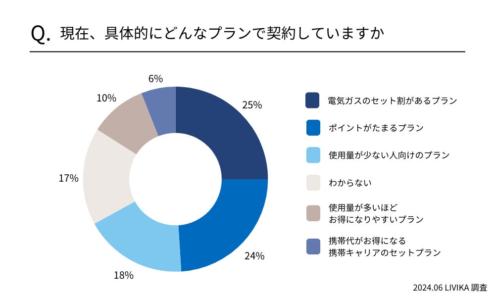 実際に契約しているプランをアンケートしたところ、一番多かったプランは「電気ガスセット割」でした。次いで多かったのは「ポイントがたまるプラン」との結果となりました。