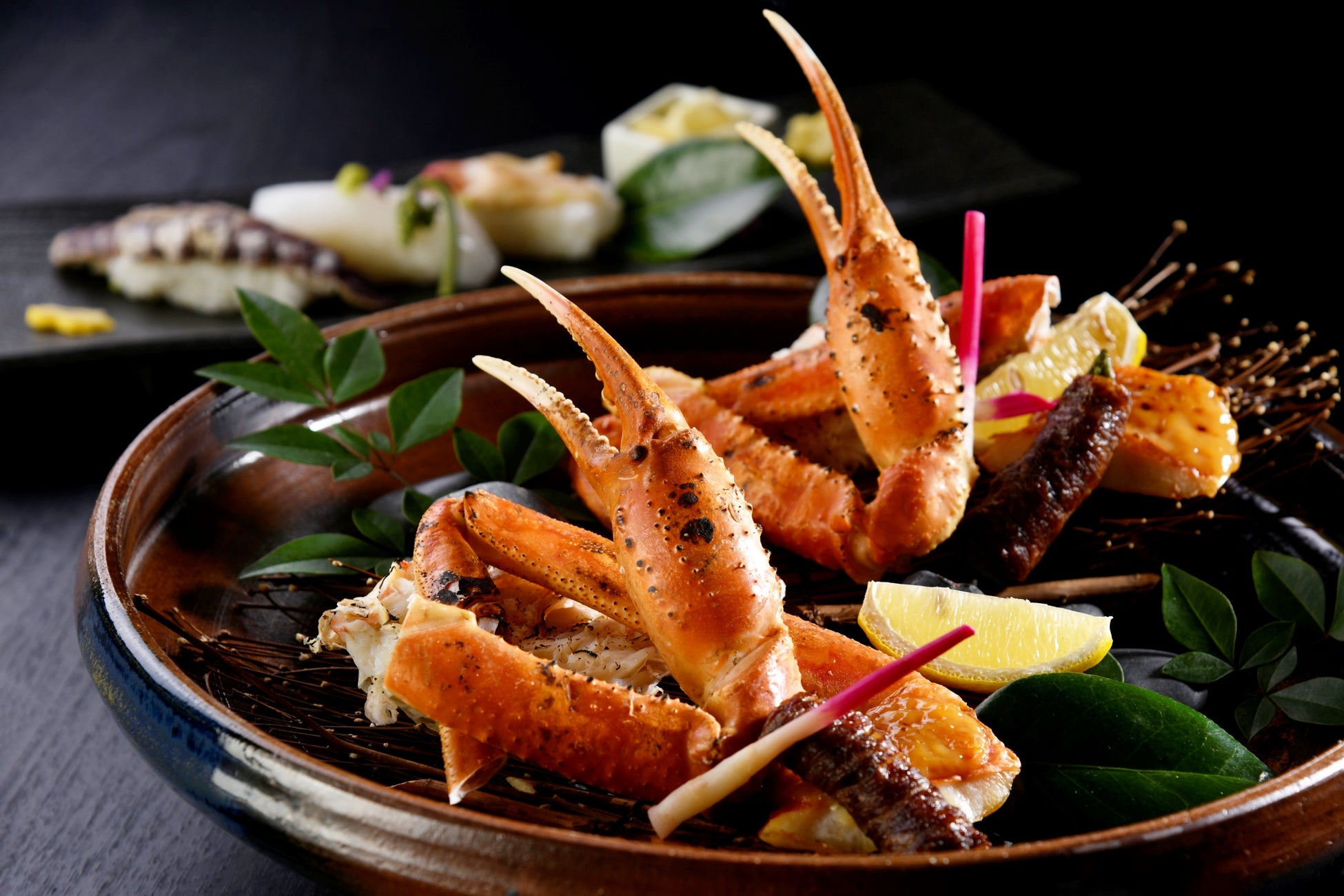 特別会席『初音』の魅力は何と言っても盛込みでご提供する御造りと焼き物。御造りには大きな牡丹海老や殻盛りで提供する雲丹、焼き物にはずわい蟹とキンキをご用意。その他にも白老牛や鮟鱇、蝦蛄など、季節の幸を様々な料理法でご用意。