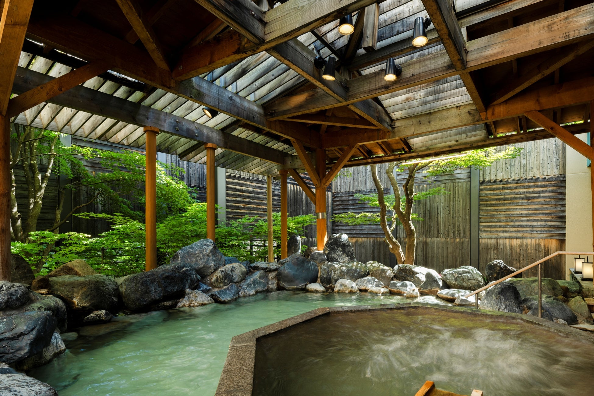 札幌市中心部より車で約50分。定山渓温泉の湯の町中央に建ち、国立公園の山々を望むことができる。日本の伝統と北海道の風土を味わう客室は全77室。館内には2つの大浴場や貸切り湯の他、北国の食材を愉しむ食事処、フリードリンクが充実のラウンジや図書ギャラリー、屋外プールも完備している。