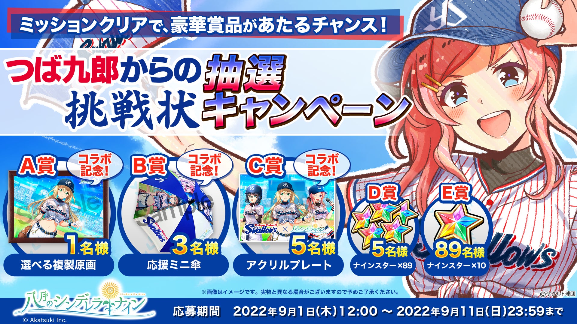 『八月のシンデレラナイン』、プロ野球球団『東京ヤクルトスワローズ』とのコラボレーションを記念した5大キャンペーンを開催!