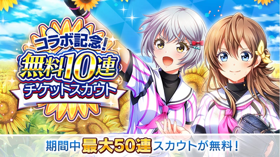 最大50連無料ガチャをはじめ、選手の直筆サインボールがもらえるキャンペーンや、コラボ記念プレゼントに応募できるゲーム内イベントも開催!