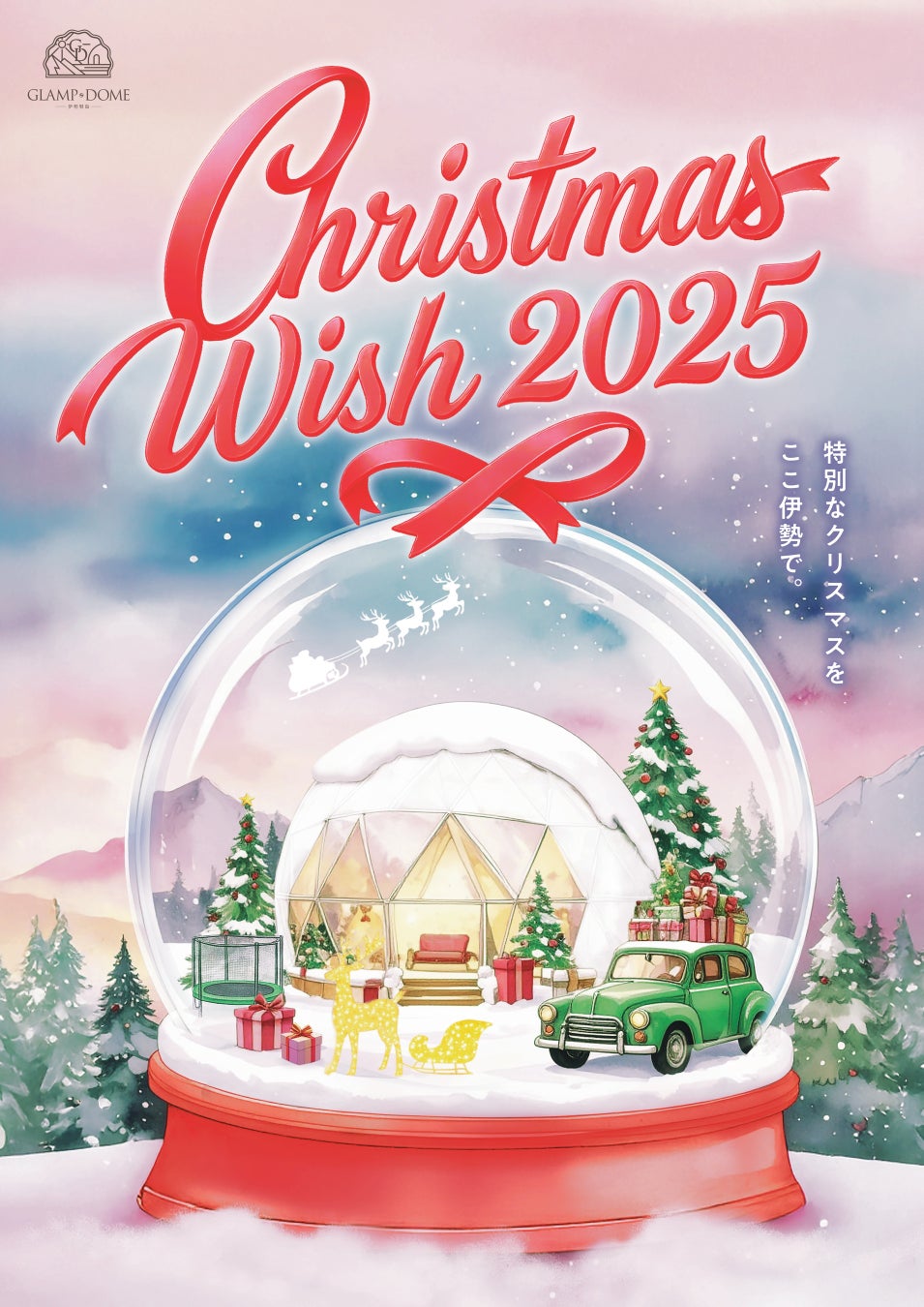 シイエスピーク株式会社(本社:大阪市北区西天満5-2-18 三共ビル東館2階 代表取締役:吉井俊貴 以下、当社)は、当社のリゾートブランド「CES RESORT」が運営するグランピング施設「GLAMP DOME伊勢賢島(グランドーム伊勢賢島)」にて、2025年12月25日(木)までクリスマスイベント「Christmas Wish 2025」を開催いたします。