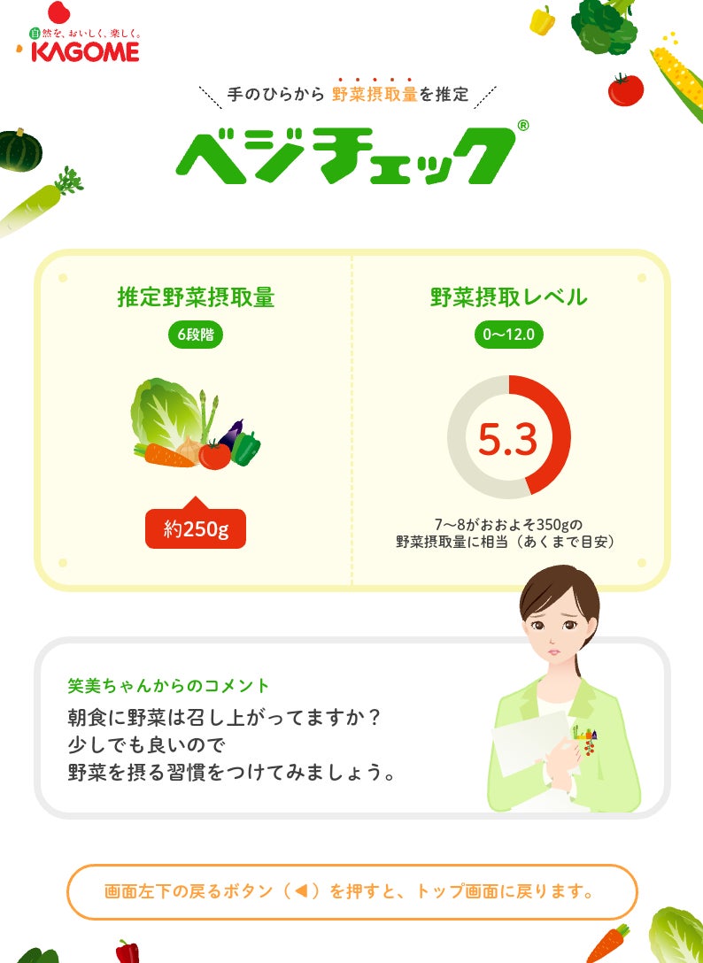 - 野菜摂取量推定機「ベジチェック®」の特徴