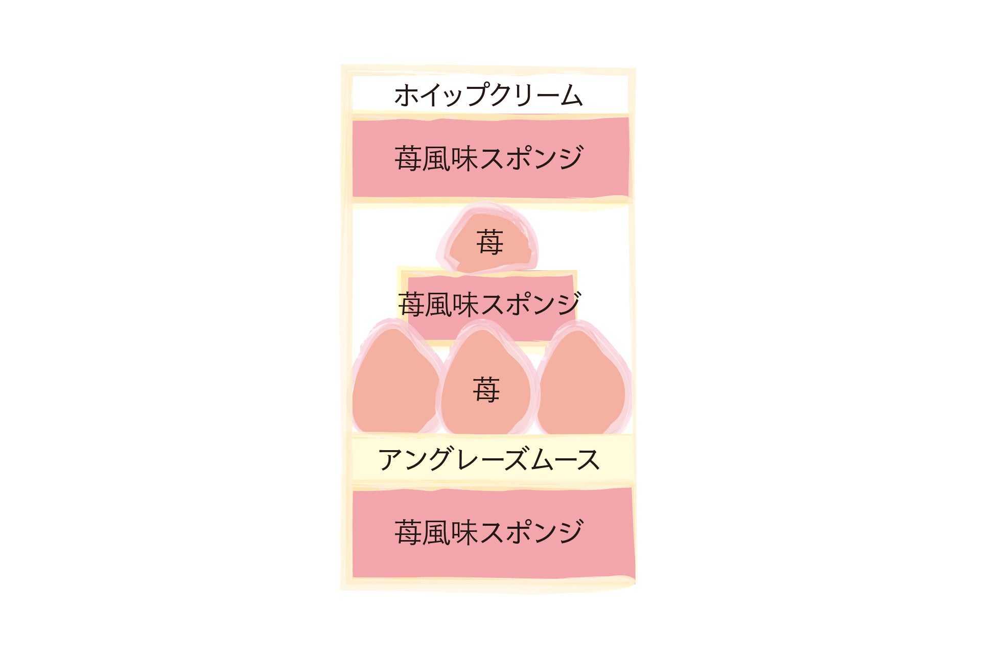 苺風味のスポンジに苺とベリーソース、ホイップクリームをサンドしフルーツを飾った「母の日」おすすめのケーキ。