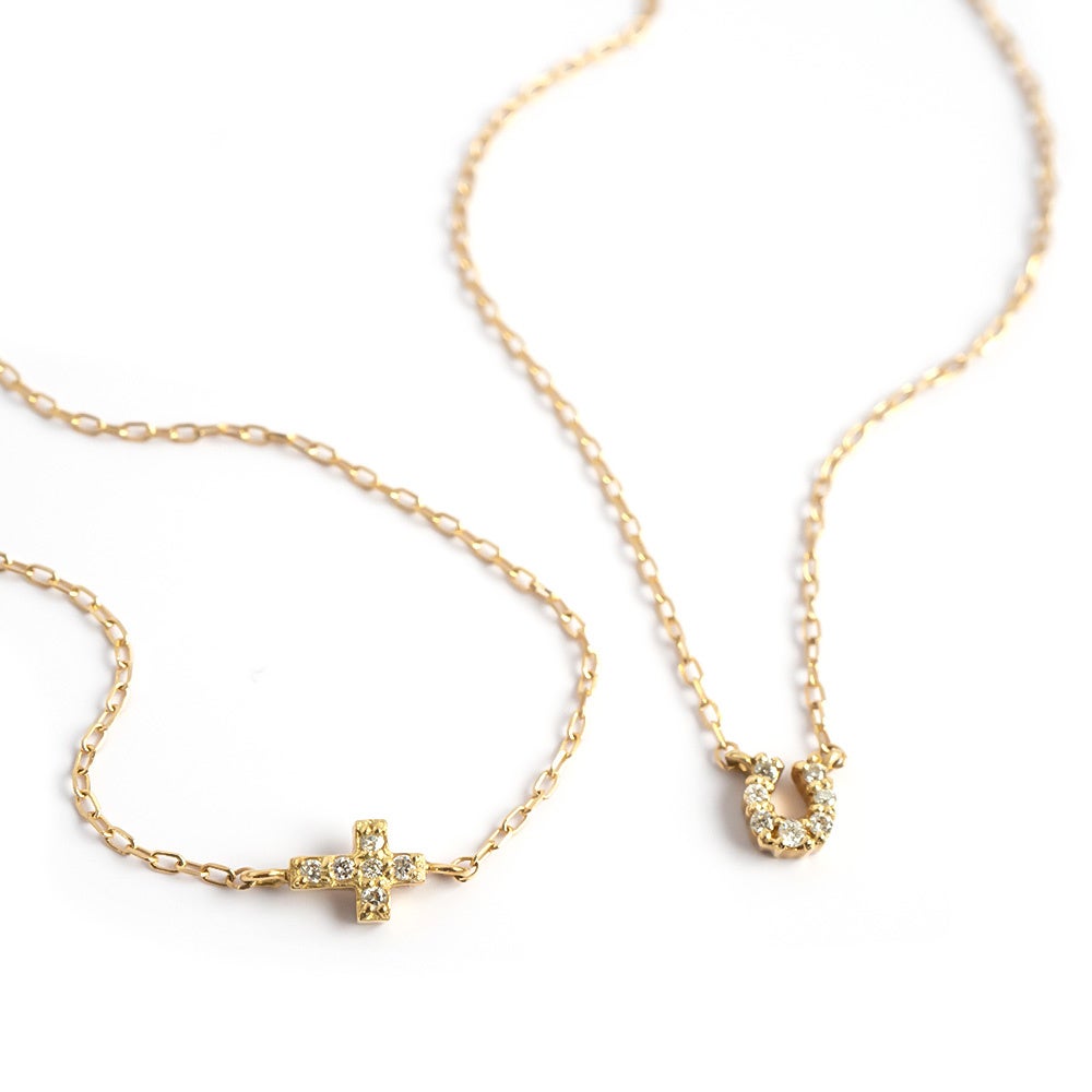 数ある国内ジュエリー工房の中でも、百貨店有名ブランドにも卸し先を持つ老舗工房製の10金ブレスレット。さりげない小ぶりモチーフが可愛らしいデザインに。「幸運」の印、ホースシューモチーフ・「災いから身を守る」クロスモチーフの2種類をご用意。