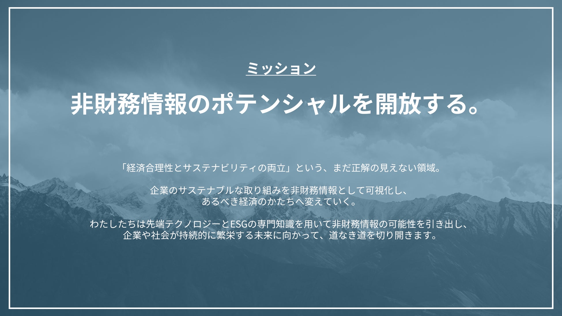 ミッション:『非財務情報のポテンシャルを開放する。』