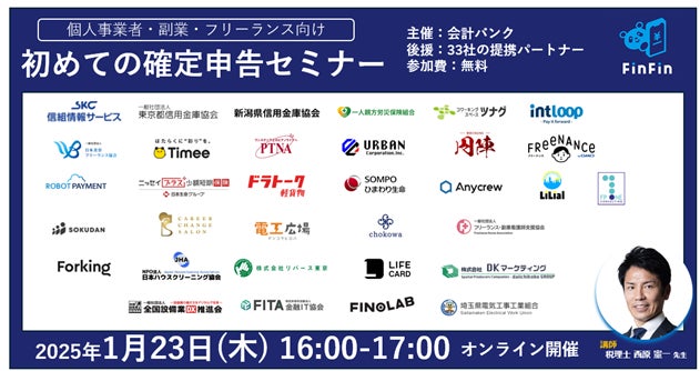 会計バンク株式会社(東京都千代田区大手町、代表取締役社長:反町 秀樹、以下「会計バンク」)は、2025年1月23日(木)に33社の提携パートナーの後援の元、「初めての確定申告セミナー」を開催いたします。