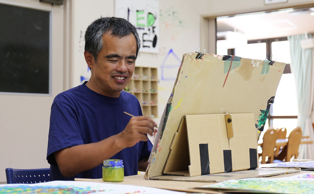 プロジェクトをともに進めるやまなみ工房は1986年に滋賀県甲賀市で開設され、現在95名が所属されています。利用者の皆さんは知的や精神、身体に障害をもっていますが、やまなみ工房では職員が一人ひとりに寄り添い、“できること”や“したいこと”を尊重されています。所属するアーティストの作品はいきいきと自由で、エネルギッシュなものばかり。多彩な作品はやまなみ工房併設のギャラリーで常設展示するほか国内外の展覧会にも数多く展示されています。