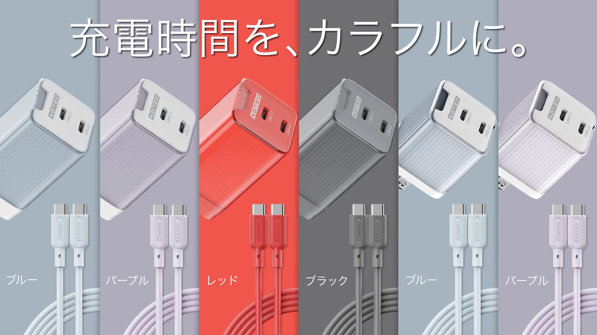スマホにぴったりのパステルカラーのGaN搭載PD充電器が登場!シリコン素材Cケーブル同梱モデルも同時に2024年5月24日(金)発売