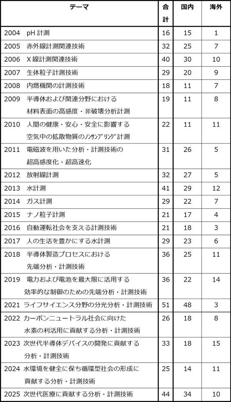 本賞は2003年に研究者奨励を目的に創設されました。以来、毎年異なる分野を対象に、新しい技術の開拓に寄与する分析・計測技術を広く募り、国内外の若手研究者・技術者を表彰しています。科学の発展に不可欠ながら、技術の主役としての脚光を浴びにくい分析・計測技術の研究に光を当て、画期的でユニークな研究をされている研究者・技術者の功績を世に知らしめたいとの創業者のおもいを受け継いでいます。当社は本賞を通じて、こうした研究者・技術者の挑戦を後押しし、将来のイノベーション創出の一助になればと願っています。あわせて、当社の社是である「おもしろおかしく」を研究の場で体現されている若手研究者・技術者の、積極的なご応募を期待しています。
