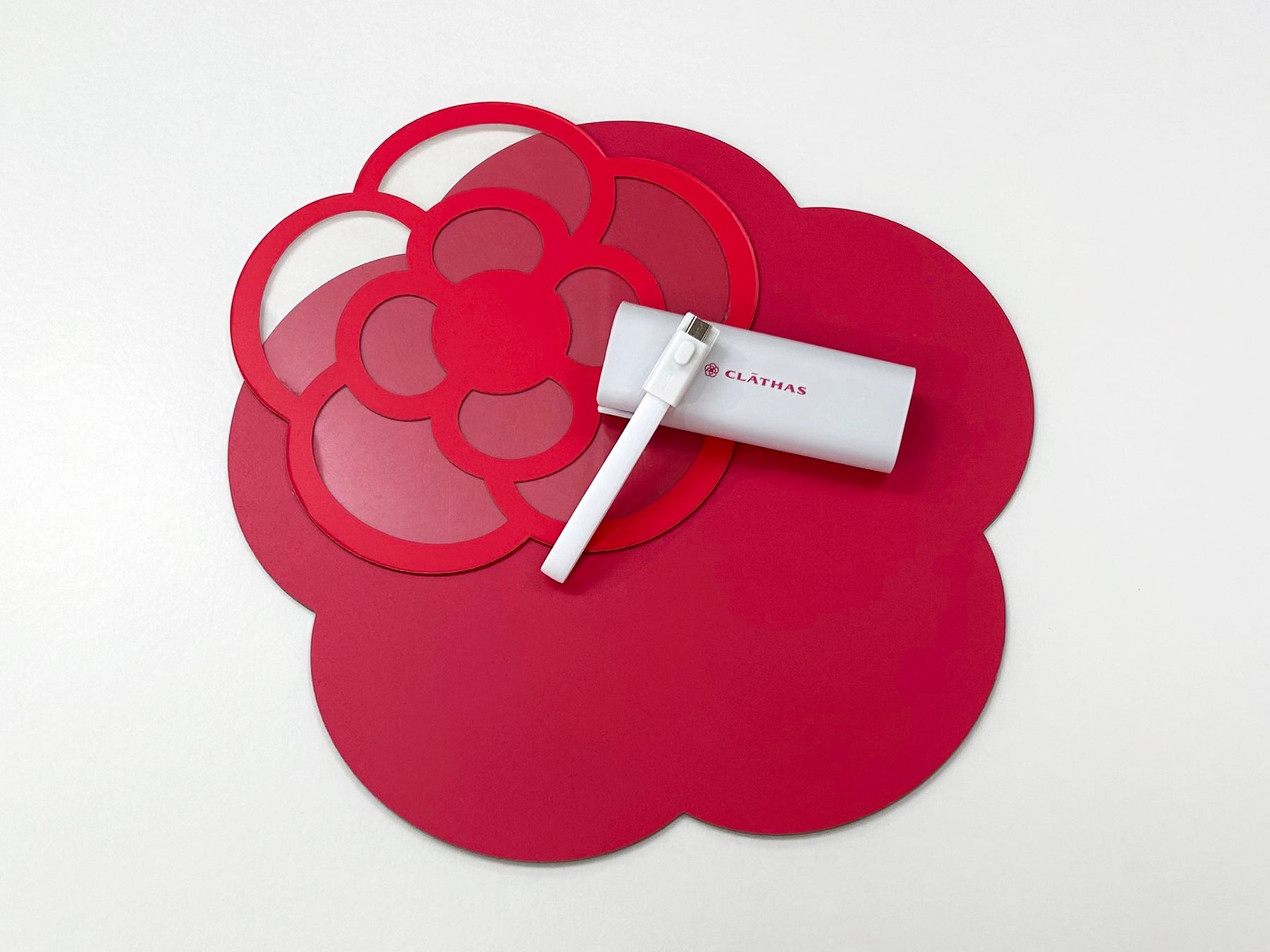 クラフト感あふれるステッチとくりぬきカメリアで温かみのあるデザインに。