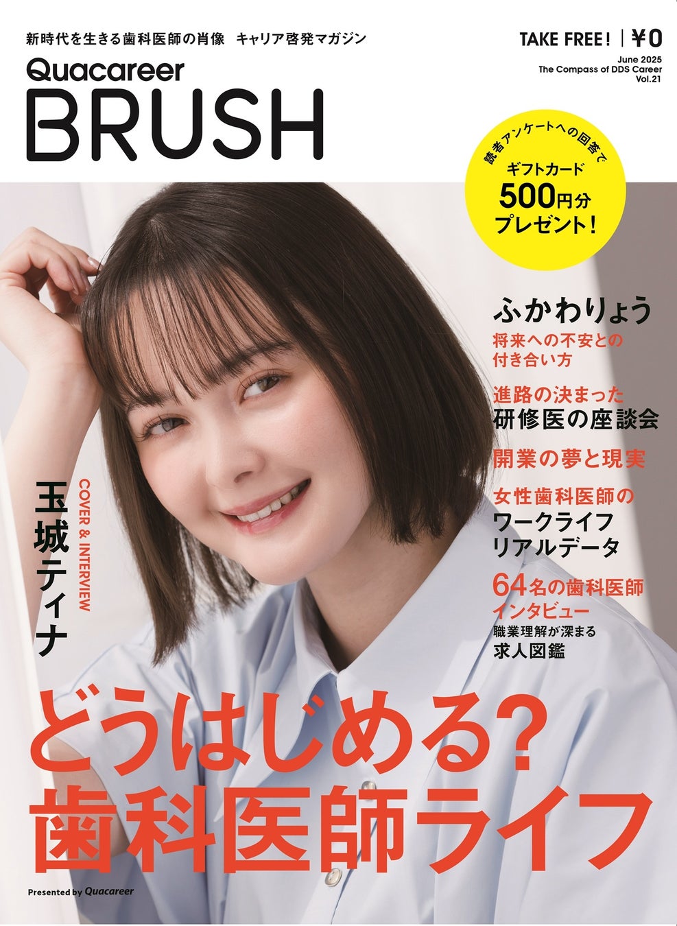 玉城ティナさんが表紙に登場!若手歯科医師・歯学部生のためのキャリアマガジン『Quacareer BRUSH』最新号を発行 —「どうはじめる? 歯科医師ライフ」を特集