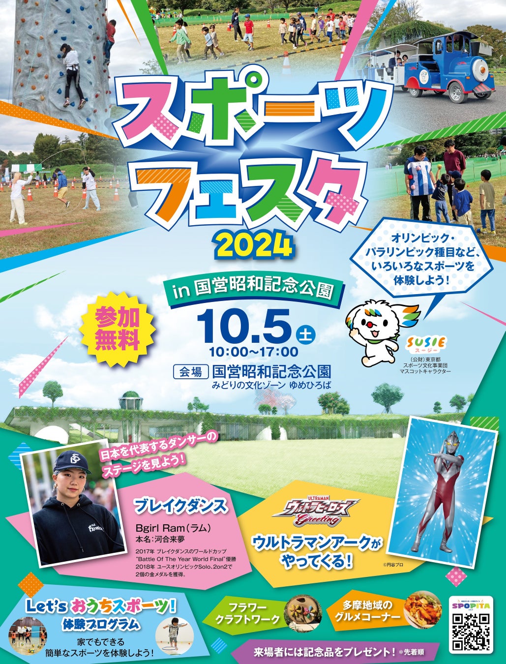10月5日(土曜日)に国営昭和記念公園にて、誰もが気軽に体験できるレクリエーション性の高いニュースポーツや地元団体のパフォーマンスが楽しめる「スポーツフェスタ2024 in国営昭和記念公園」を実施します。