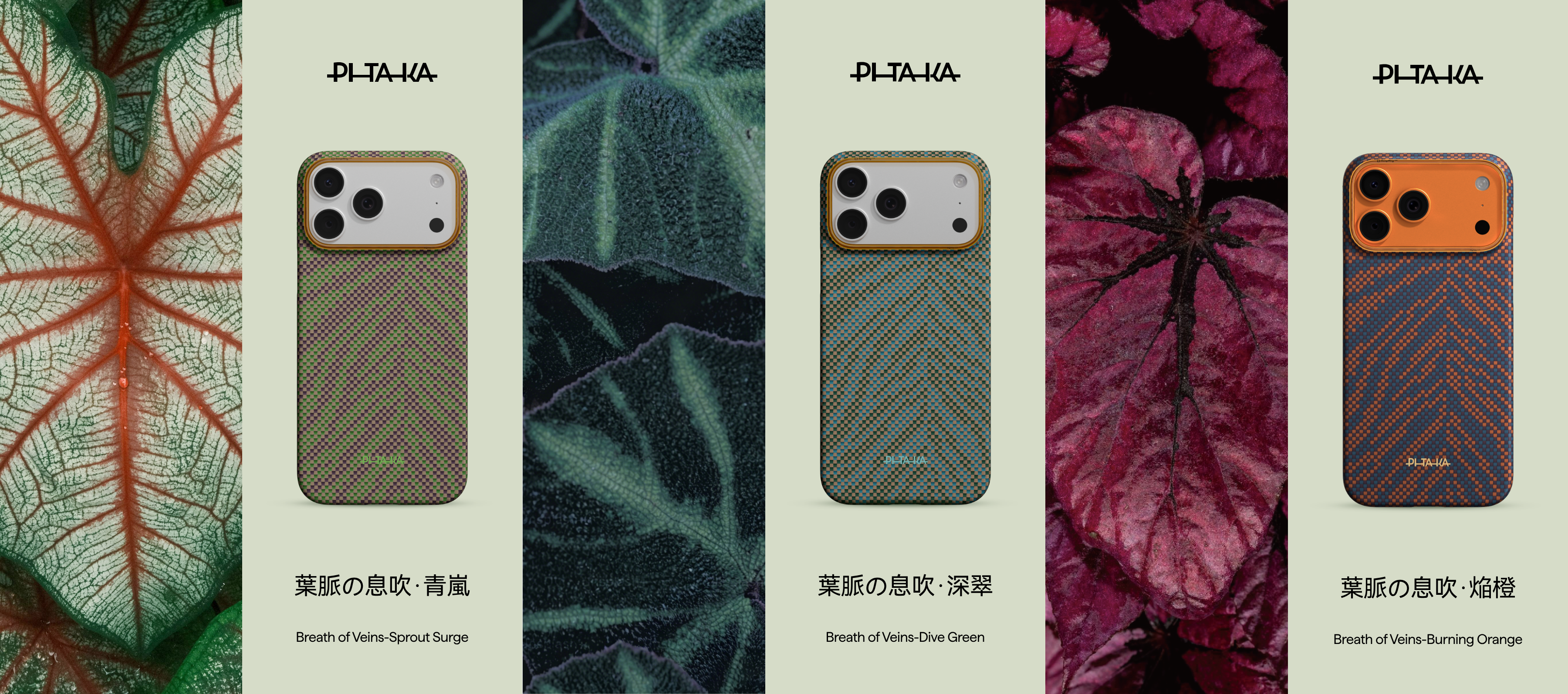 高性能素材を活用したライフスタイルアクセサリーブランドPITAKA(Shenzhen Lingyi Innovation Technology Co.,Ltd)は、2026年4月22日(水)のアースデーに合わせ、色彩豊かな葉脈が特徴的な植物・ベゴニアの葉に着想し、野性味あふれる自由な成長のリズムを表現するPITAKA Edge Caseの新シリーズ 「葉脈の息吹 / Breath of Veins」 を発表いたしました。本シリーズは、航空宇宙グレードのアラミド繊維を用いた浮織技術により葉脈のような自然の構造を触感豊かなテクスチャーとして再現した、全3色のスマートフォンケースです。