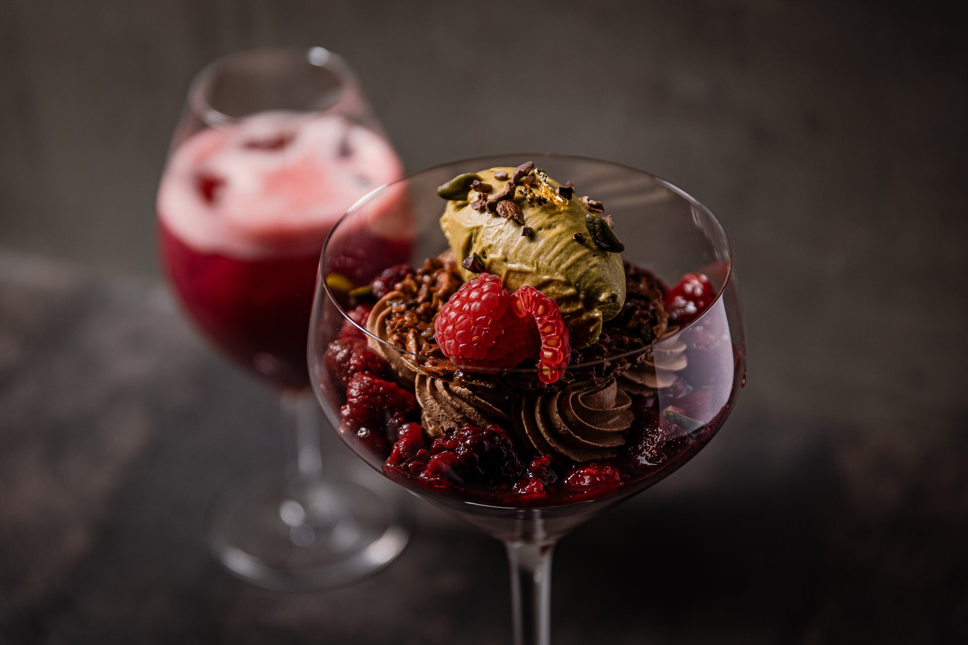ピスタチオ×チョコレート×フランボワーズを使った、本場ヨーロッパのクリスマスをイメージした季節限定パフェが登場。住所非公開、会員制パフェバー「Remake easy」