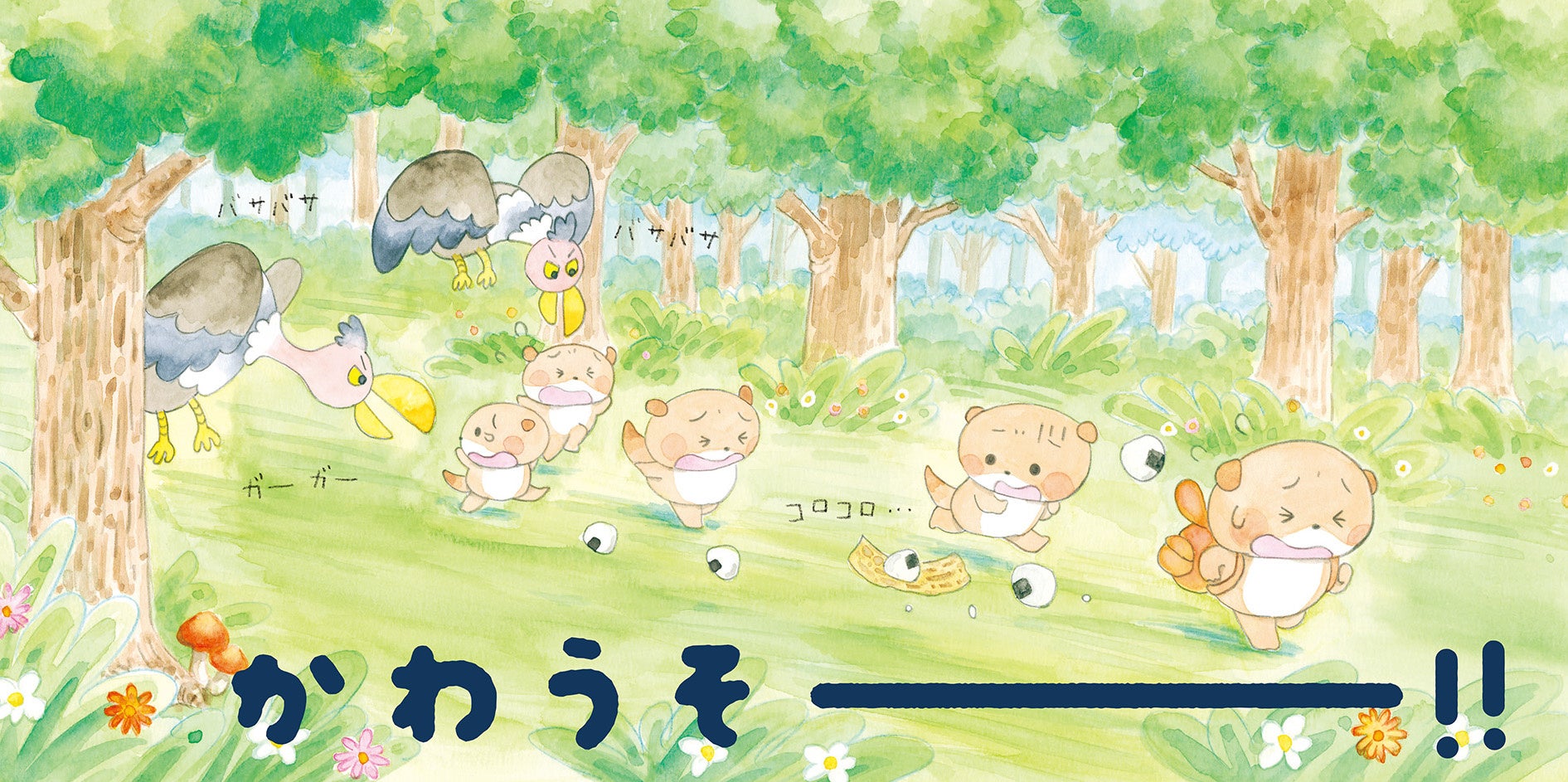 助けてあげたのに勘違いされたり、鳥さんに追いかけられてお弁当のおむすびが落っこちてしまったり散々。次から次へとかわいそー(かわうそー!!)な展開に。