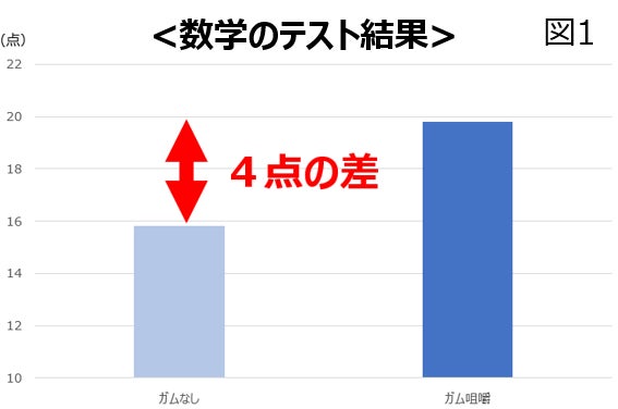 ・ガムを噛みながら数学の勉強をすると、数学のテストの成績の伸びが大きい。(図1)