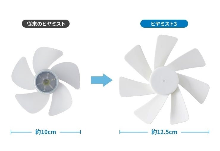 「ヒヤミスト3」のファンは、従来の5枚羽から7枚羽になりました。やさしい自然の風に近い風が届きます。