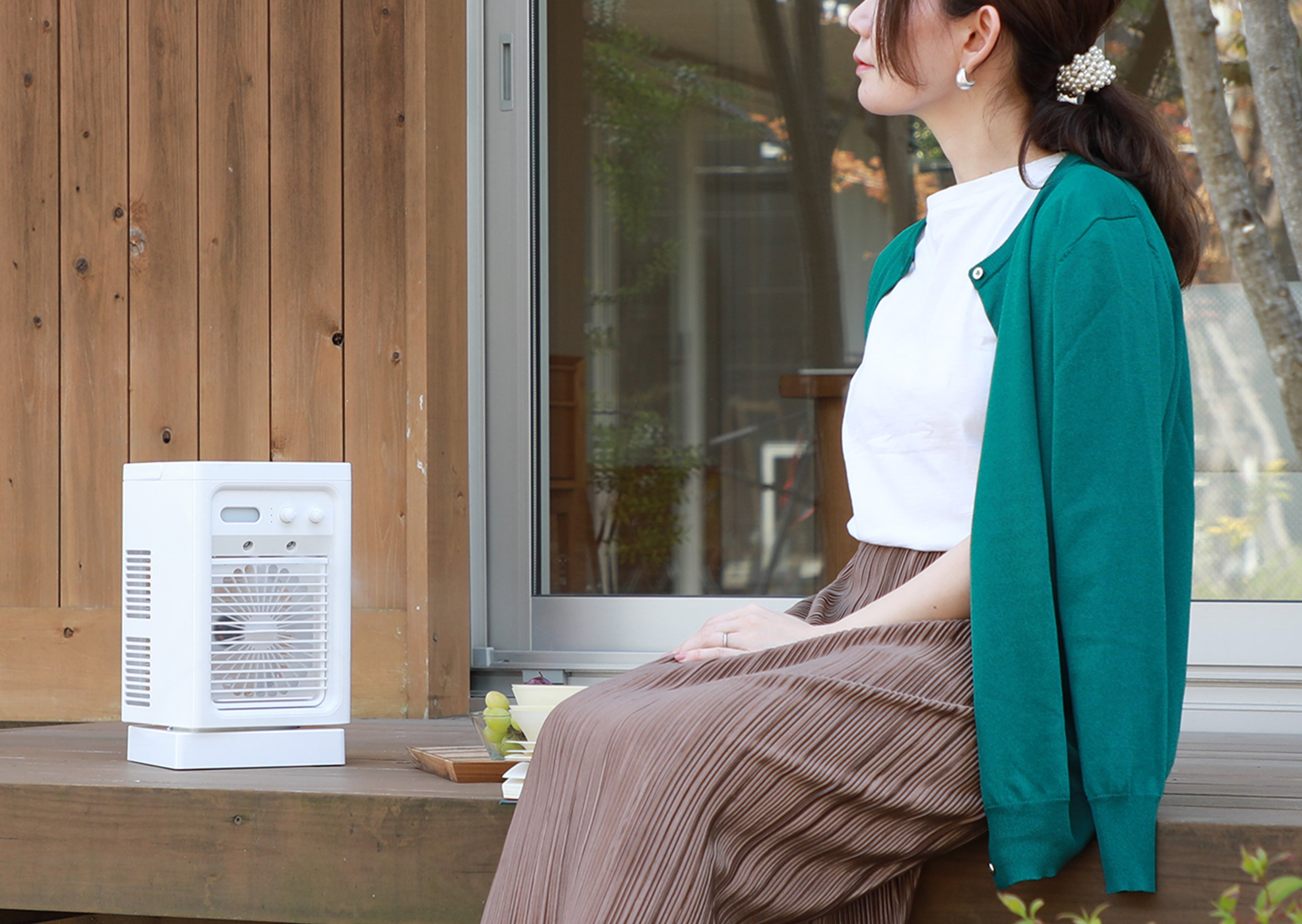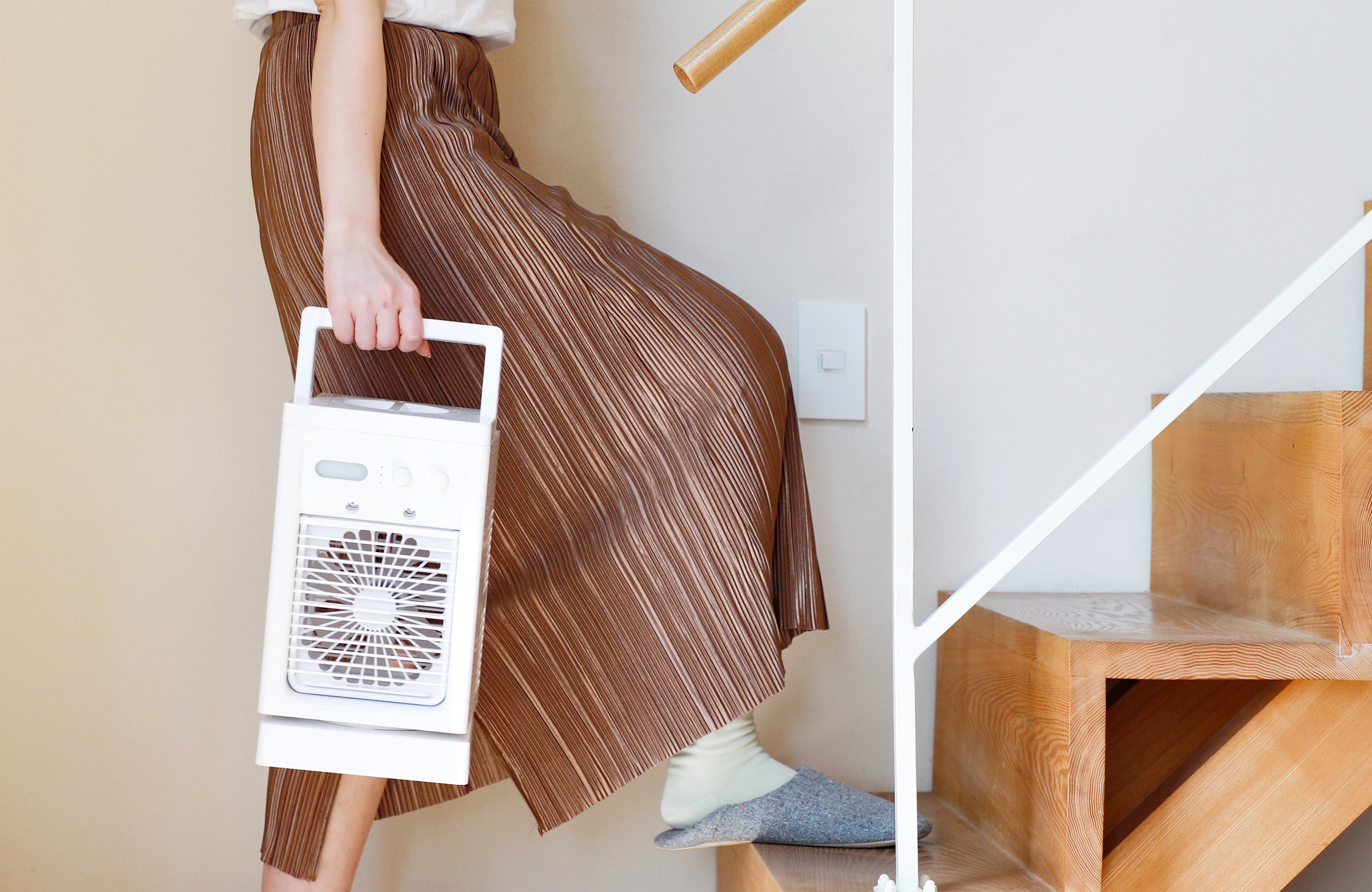 冷風扇とは、水分が蒸発する際に周囲の熱を奪う現象「気化熱」を利用し、ミストが付着した際の気化熱によって涼しく感じる家電です。