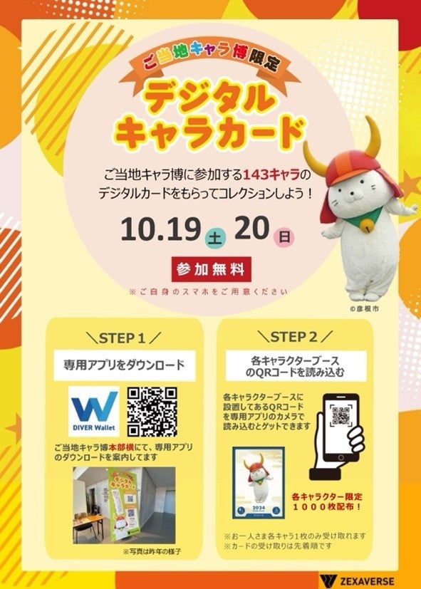 株式会社ZEXAVERSE(本社:東京都千代田区、代表取締役:上瀧 良平、以下「ゼクサバース」)は、2024年10月19日(土)・20日(日)に夢京橋キャッスルロード一帯で開催される「ご当地キャラ博2024」にて、全国各地のご当地キャラを限定NFTとしてイベント参加者にプレゼントいたします。