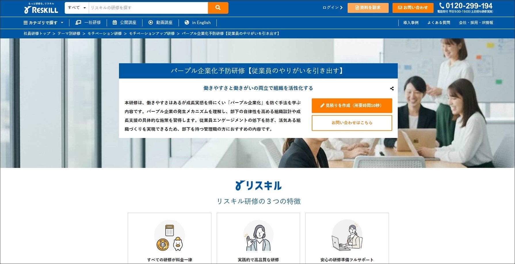 企業向け研修サービスの提供株式会社リスキルは、企業の人材育成を支援する法人向け研修サービスを提供しています。階層別研修、テーマ別研修、職種別研修など、幅広い分野でビジネスに必要なスキル強化をサポートしています。