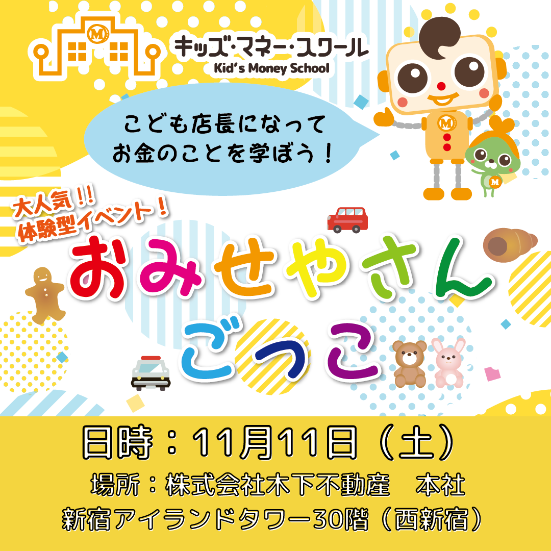 11月11日(土) | ①10:30~ ②13:30~ | 親子で学べるキッズマネースクール おみせやさんごっこ “はたらくってな~に?”」 ※オフライン体験型イベント(新宿本社) |