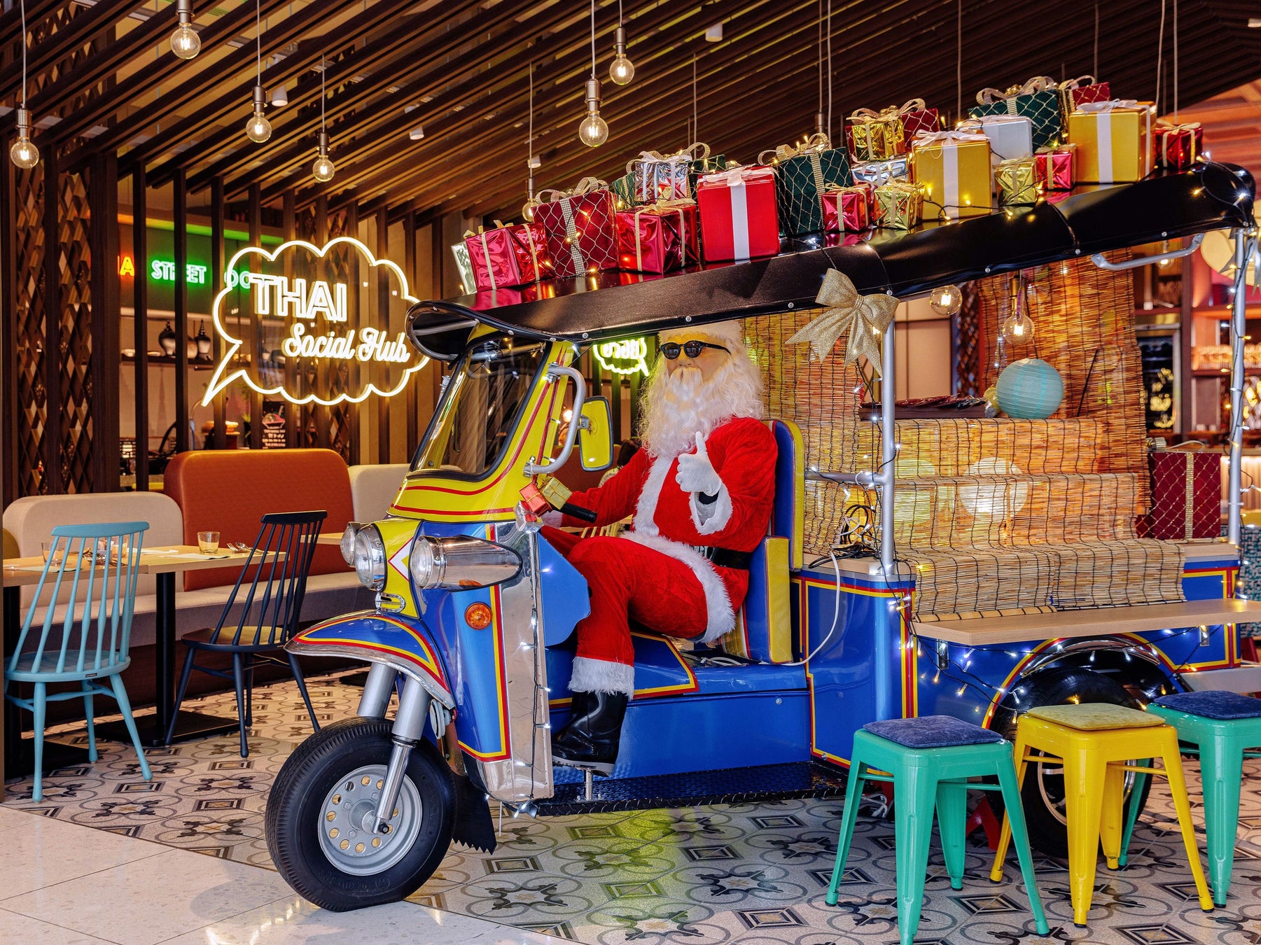 サンタとプレゼントが乗ったトゥクトゥクや、高さ5mのクリスマスツリーも登場!