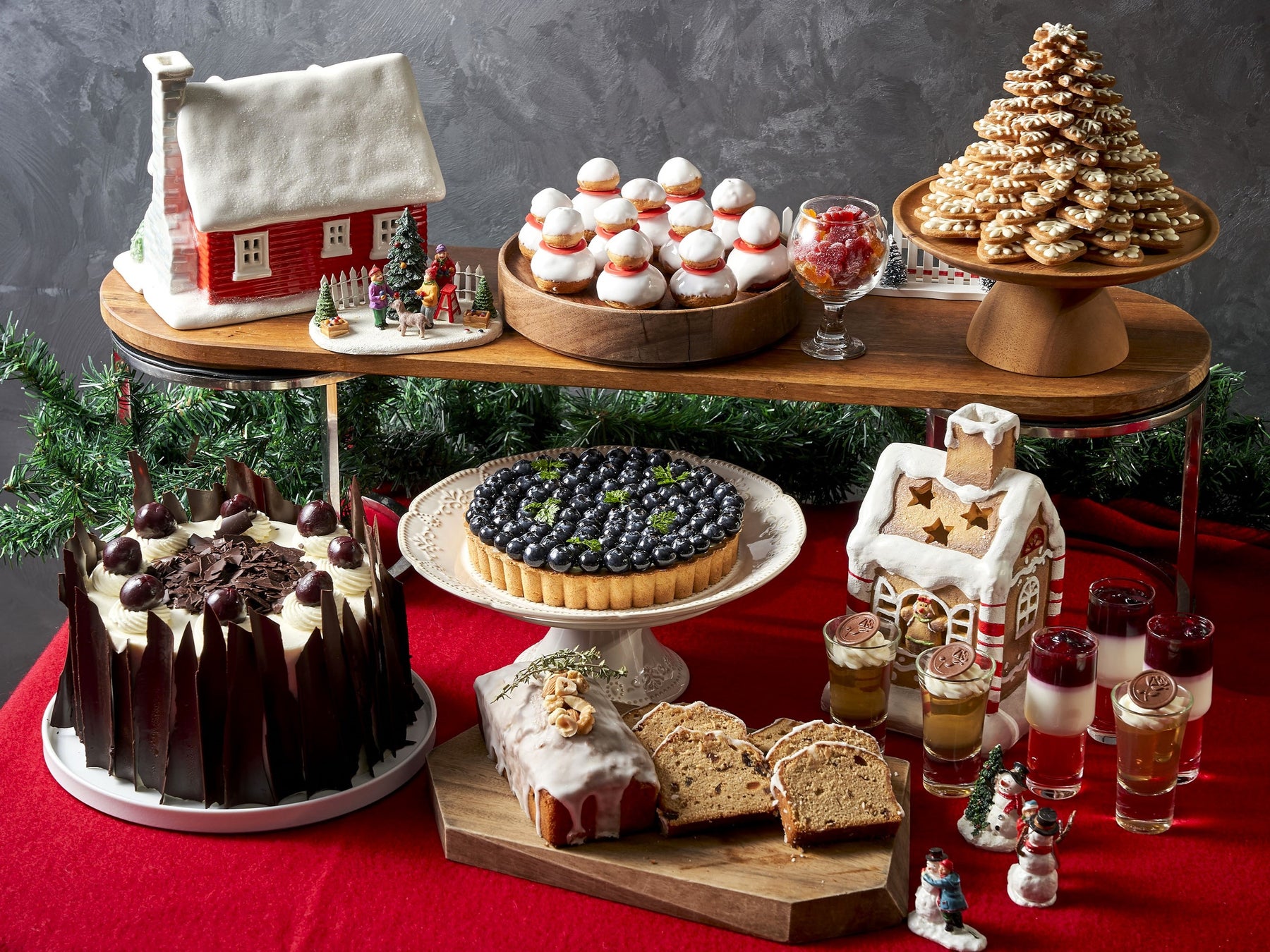 ブッシュドノエル、クリスマスカップケーキ、オーナメントマカロン(ミックスフルーツ・チョコレート)、スノーマンシュー、スパイスクッキー、フルーツパウンド、ダークチェリーフォレノワール、ブルーベリータルト、ショートケーキ、キャラメルアーモンドケーキ、Xmasマドレーヌ、ショコラケーキ、ミックスベリーケーキ、季節のフルーツタルト、Xmasキャンディー、Xmasクッキー各種、ミックスベリーパンナコッタ、ゼリー各種(梨・青りんご・苺など)、他