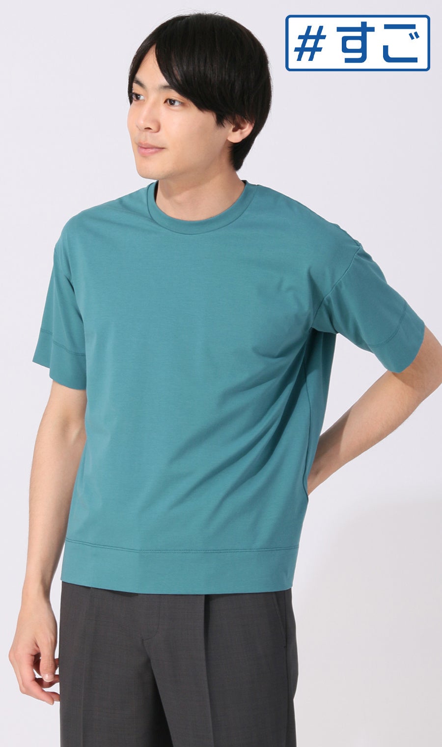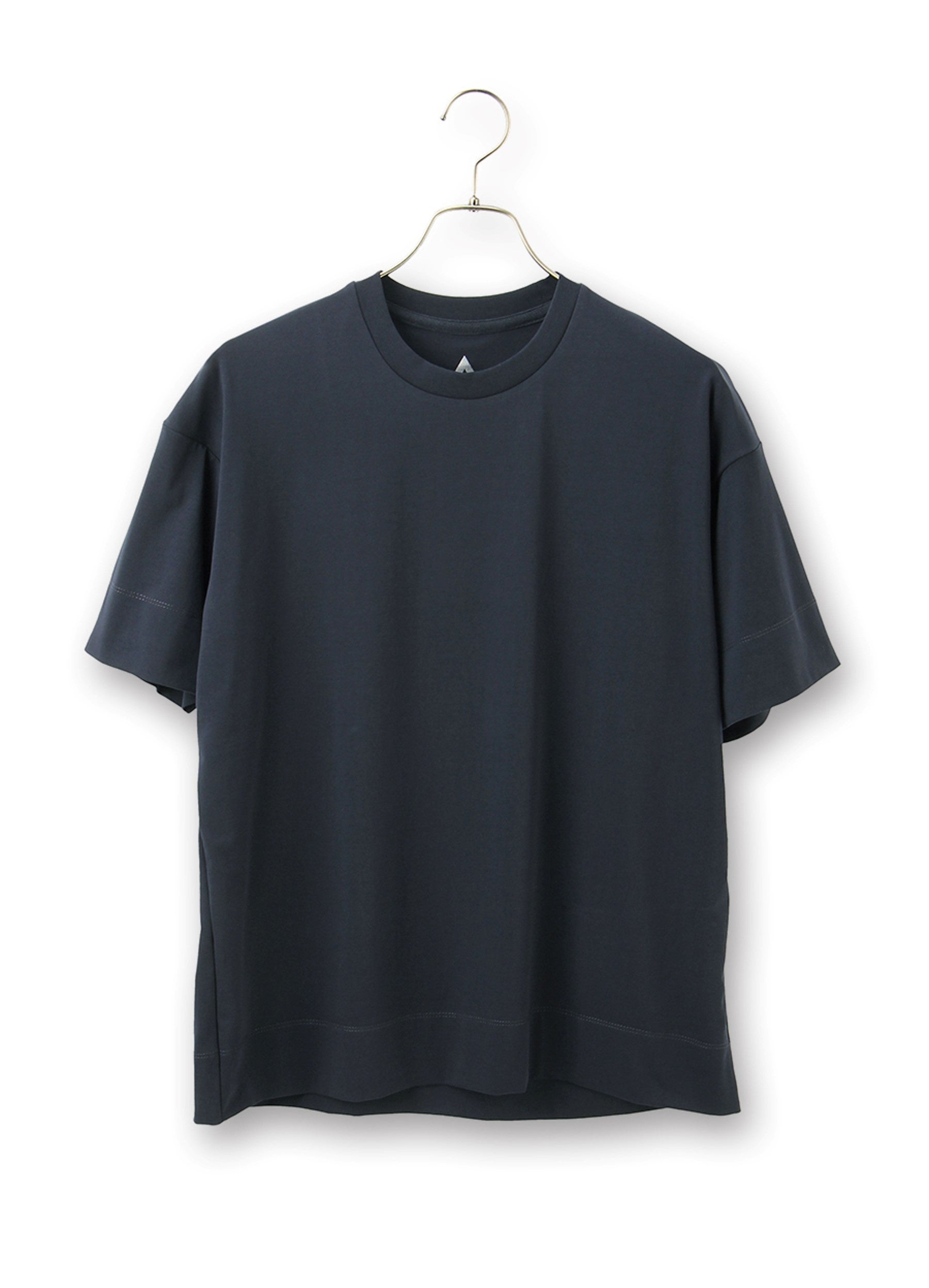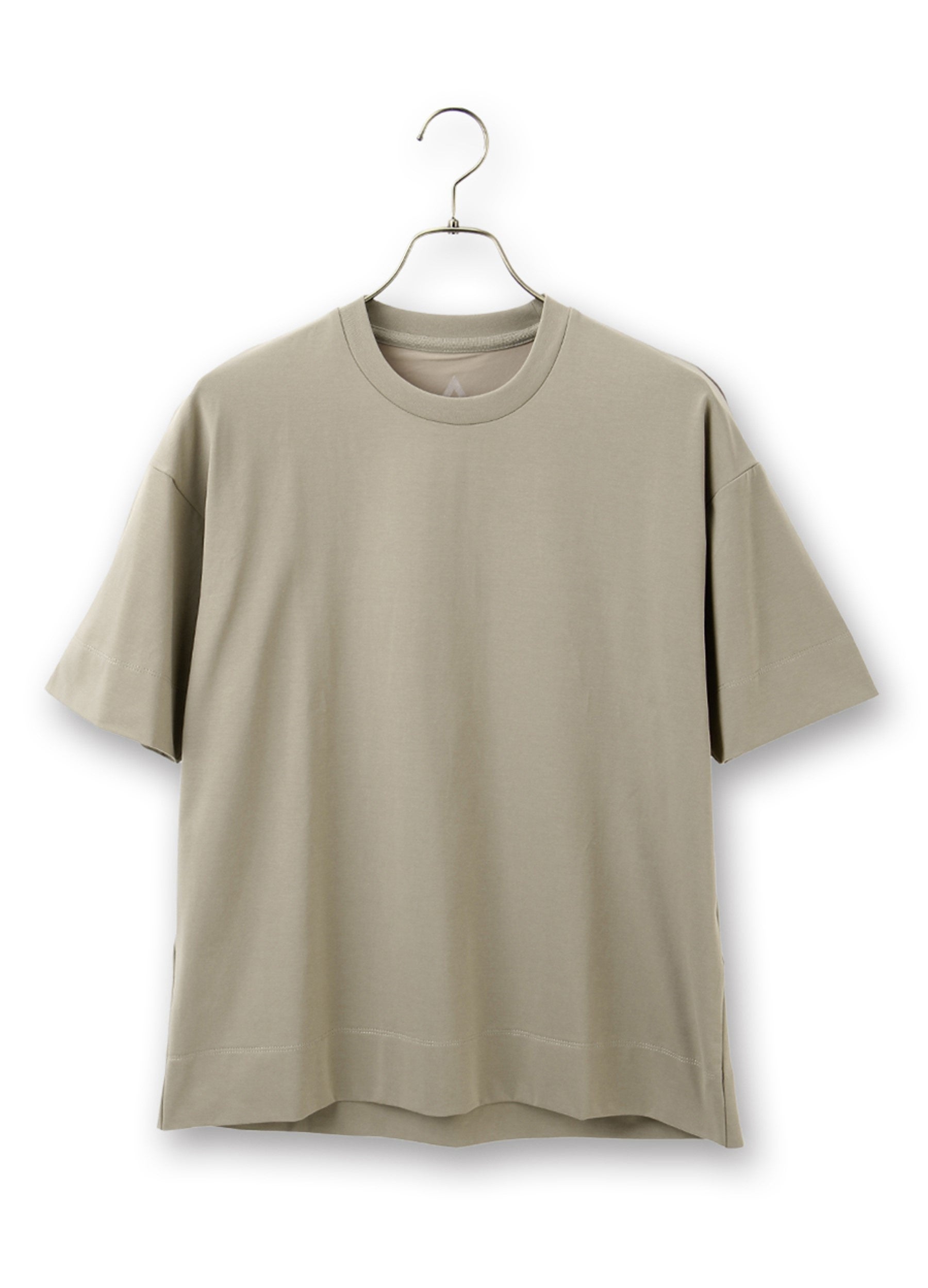 その他デザインにおいては、Tシャツのネック部分の襟を高く設計し、ジャケットの襟を汚れにくくしています。さらに、袖の裾部分を少し絞ることでジャケットの袖通しを良くする工夫を施すなど、ビジネス用として仕立てたTシャツです。