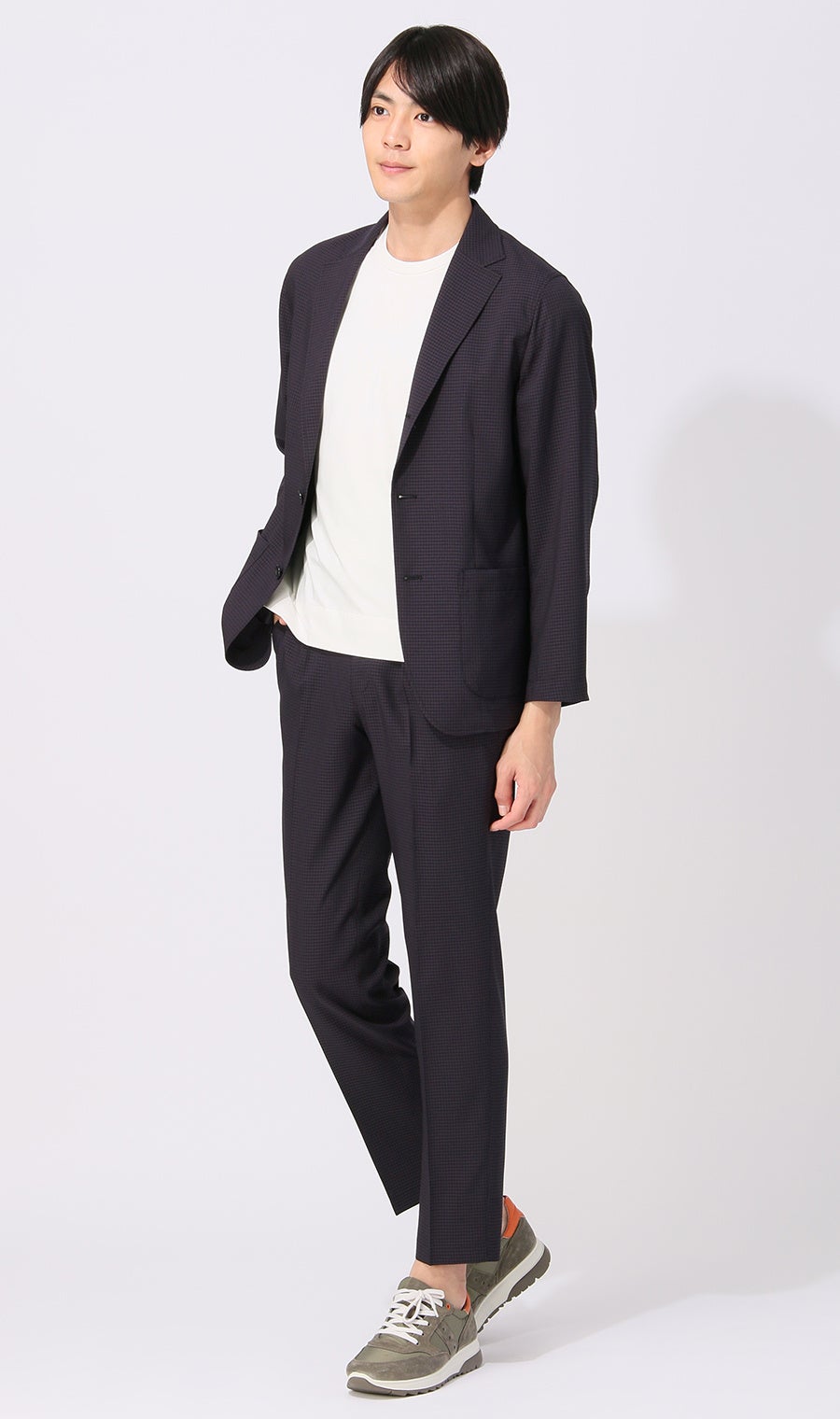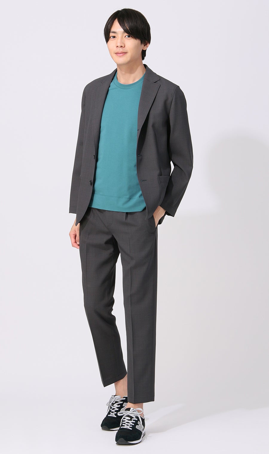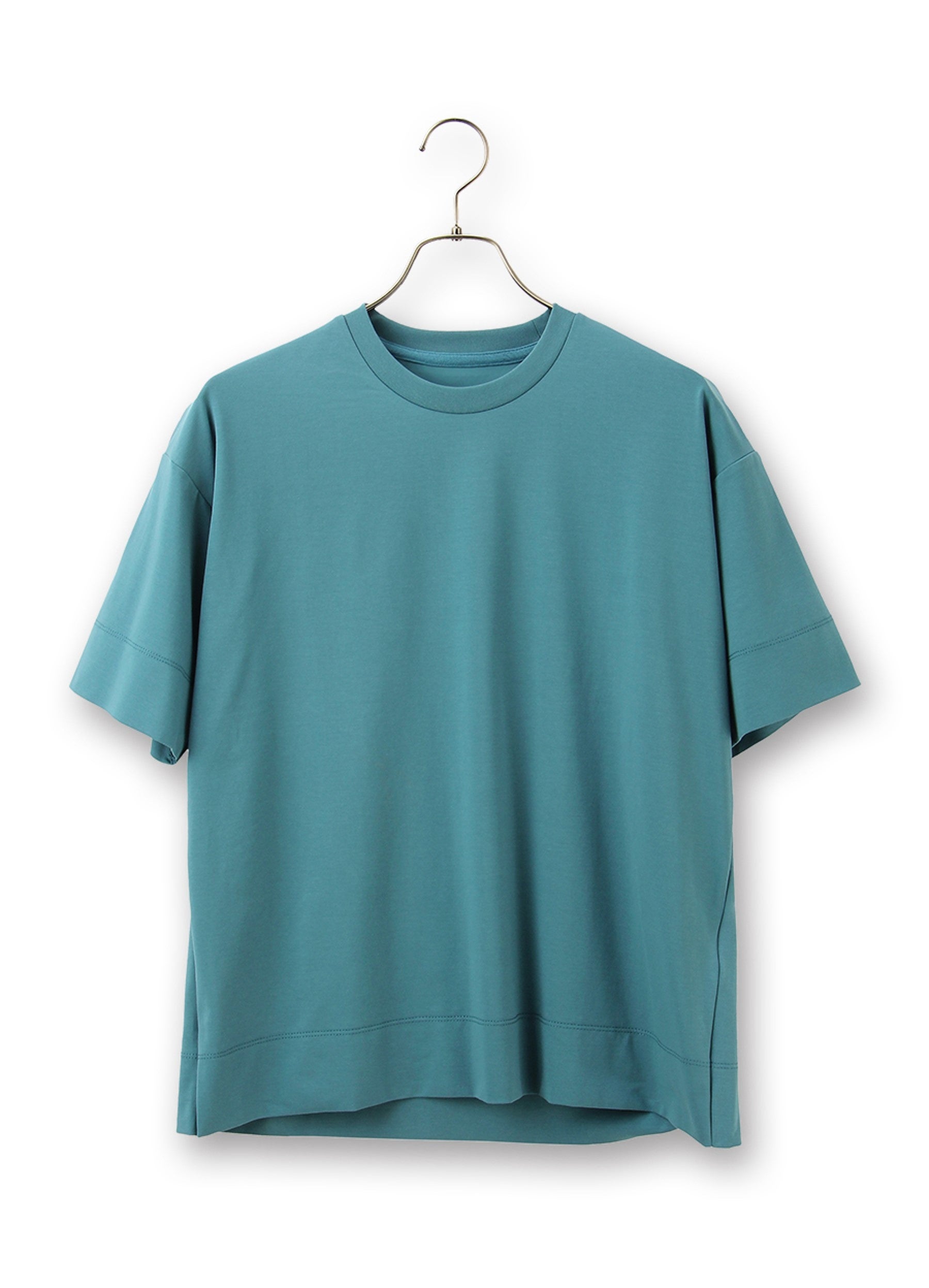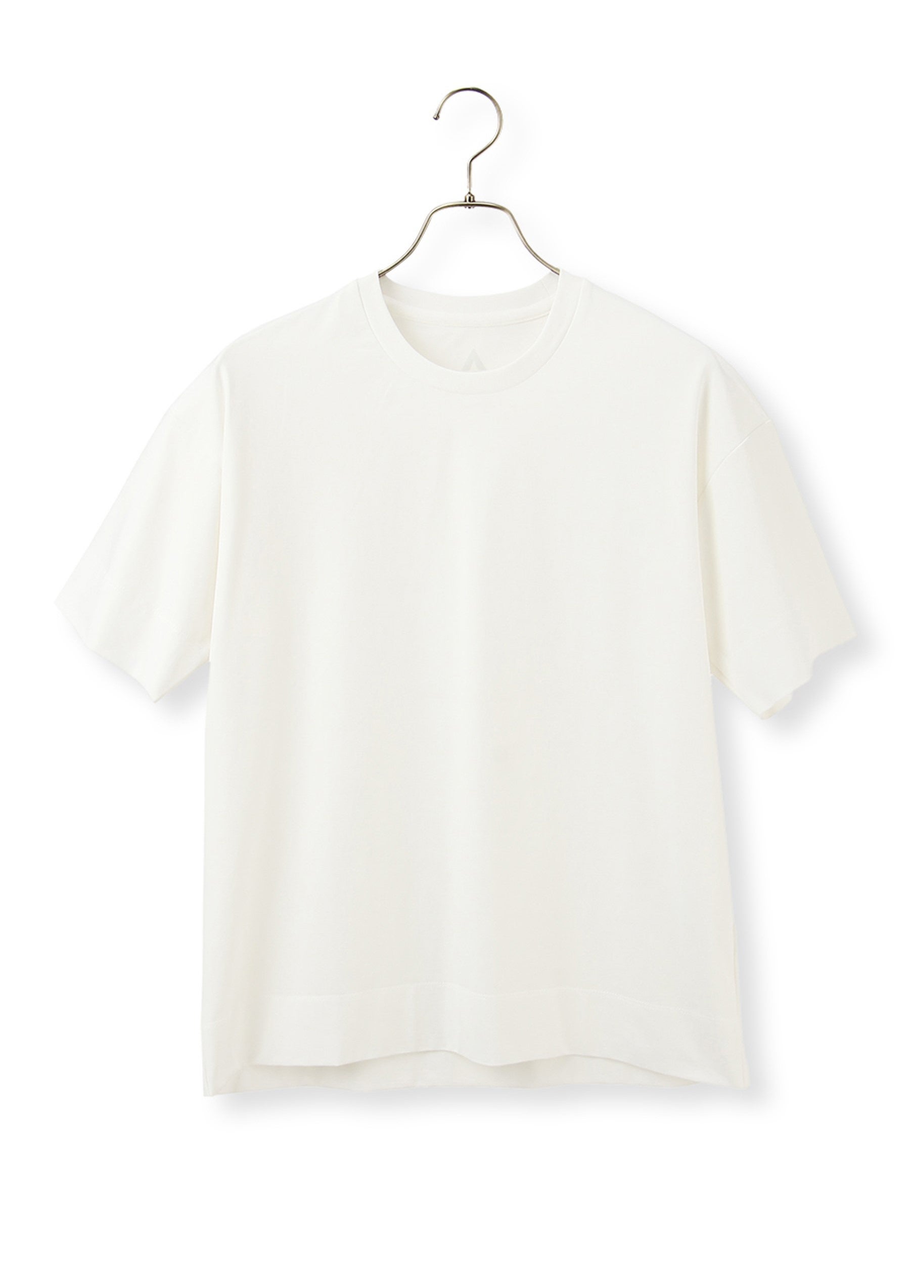 その他デザインにおいては、Tシャツのネック部分の襟を高く設計し、ジャケットの襟を汚れにくくしています。さらに、袖の裾部分を少し絞ることでジャケットの袖通しを良くする工夫を施すなど、ビジネス用として仕立てたTシャツです。