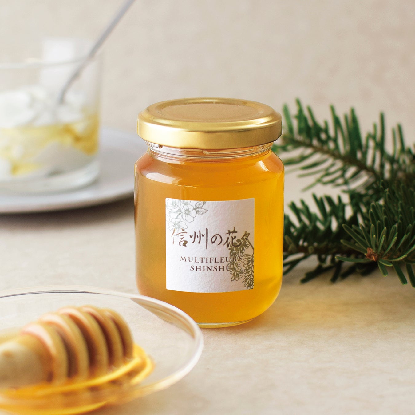 ■商品説明:八ヶ岳を臨み千曲川が流れる、自然豊かな信州に咲く季節の花々から採れた百花蜜。清々しく軽やかな花の香りとフルーティーな甘み。ヨーグルト、フルーツ、紅茶などと相性がよく、食材の良さを引き立たせます。