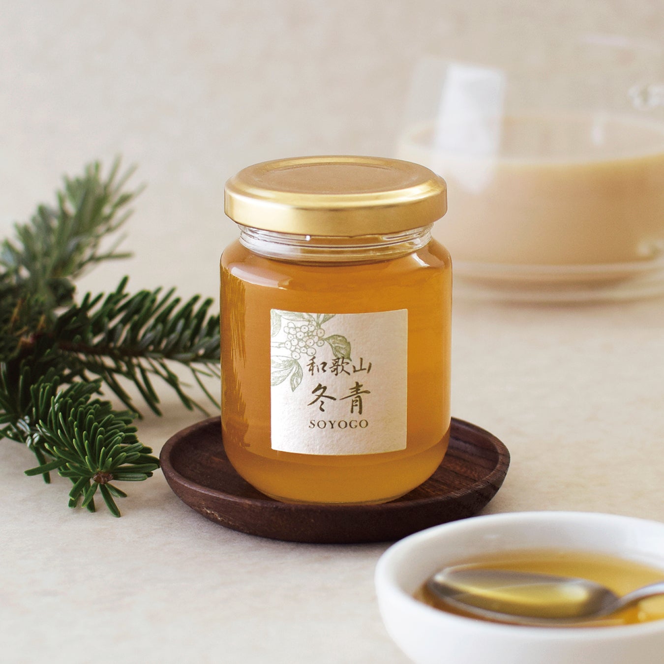 ■商品説明:冬青(そよご)は6 月頃に白い小さな花を咲かせ、冬に可愛らしい赤い実をつける樹木。一年中青々として葉を絶やさず、赤い実を結ぶため、縁起が良いと言われています。冬青から採れるはちみつは、ふくよかな花の香りとほのかにキャラメルを思わせるコクと香りが魅力。トーストやミルクティーにぴったりな味わいです。