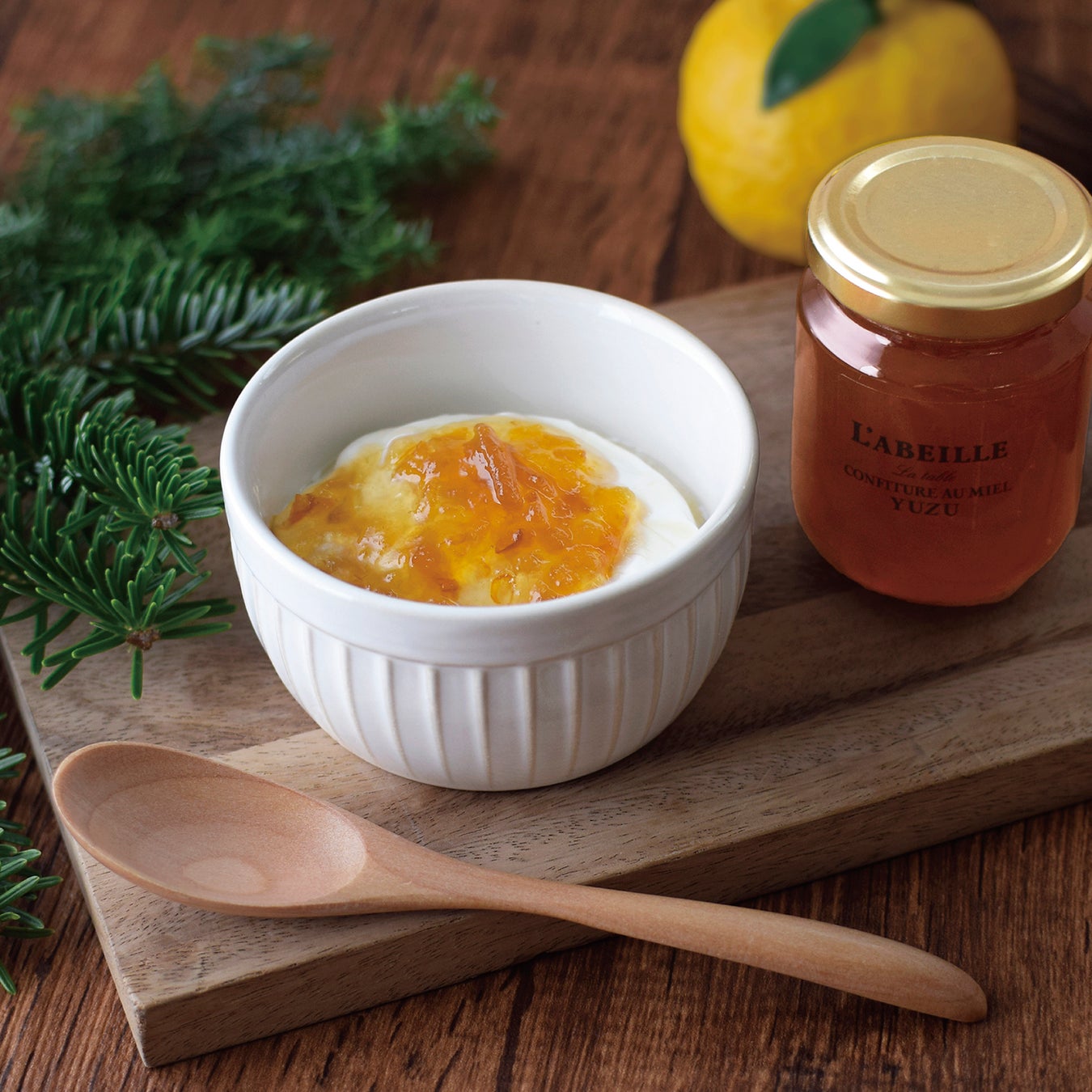 ■商品説明:たっぷりのラベイユハニーで国産ゆずを煮詰めたコンフィチュール。ゆずのさわやかな酸味とピールの程よいほろ苦さが楽しめる、さわやかでフルーティーな味わい。トーストやヨーグルトに。そのままお湯に溶かしてゆず茶としても。*アカシアはちみつを60%以上使用しています。
