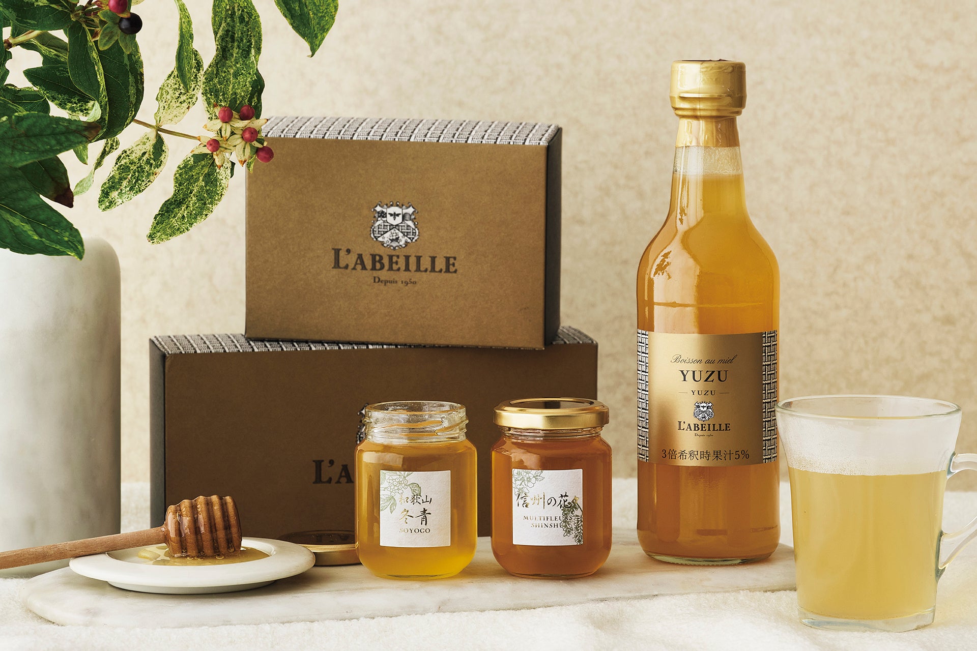 自然豊かな信州に咲く季節の花々から採れた百花蜜「信州の花々」、ふくよかな花の香りとほのかにキャラメルのような甘さ「和歌山 冬青(そよご)」、濃くジューシーなみかんを思わせる深い甘みが魅力「香川 曽保みかん」の3 種類の国産はちみつが冬季限定で登場します。自然の恵みをぎゅっと詰め込んだ、繊細で上品な味わいは国産はちみつならでは。このほか、たっぷりのラベイユハニーと大分県産のゆず果汁だけでできた「はちみつドリンク ゆず」、ゆずの爽やかな酸味と程よいピールのほろ苦さが楽しめる「はちみつコンフィチュール ゆず」も冬季限定で発売。ゆずの爽やかな香りにはリラックス効果があると言われており、はちみつのやさしい甘さと組み合わさって冬の寒さで疲れた心を癒してくれます。冬季限定のはちみつとはちみつ食品をセットにして、今年一年の感謝の気持ちを込めた冬のギフトや帰省土産におすすめです。