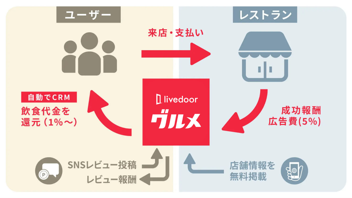 ライブドアグルメは、食いしん坊たちが本当に美味しいお店を炙り出すグルメSNSサービスです。ユーザーは美味しい飲食店開拓を楽しみ、レビュー投稿することで、グルメSNS上でのスコアに応じてポイントが配布されます。現在、食いしん坊コミュニティによるレビュー投稿は累積51万件となります。AIが口コミを分析して個人の趣味嗜好に合ったお店をレコメンドすることで、ユーザーは最速でコスパの良いお店が見つけられる新しい飲食店開拓サービスです。また、ライブドアグルメ加盟店での飲食代金から還元されるポイントや、デジタル優待・会員証などが一元管理でき、継続来店の楽しさも同時に提供しております。