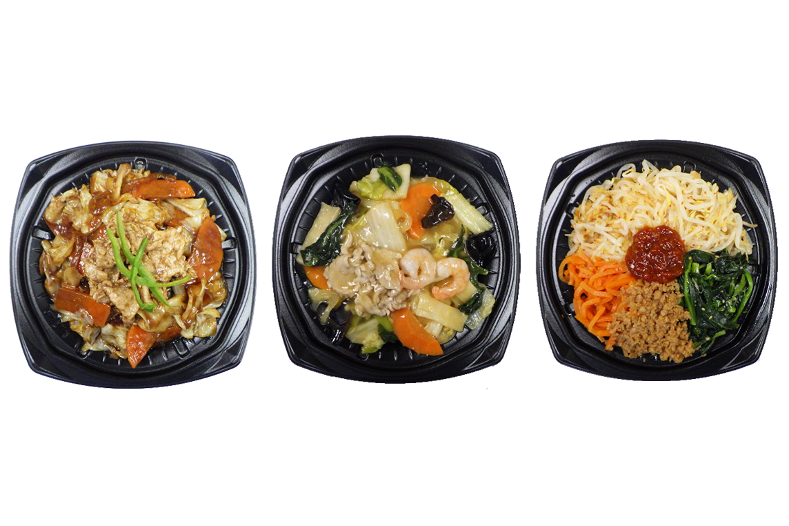 1日に必要な野菜3分の1使用!回鍋肉丼(左)/同 中華丼(中央)/同 ビビンバ丼(右)