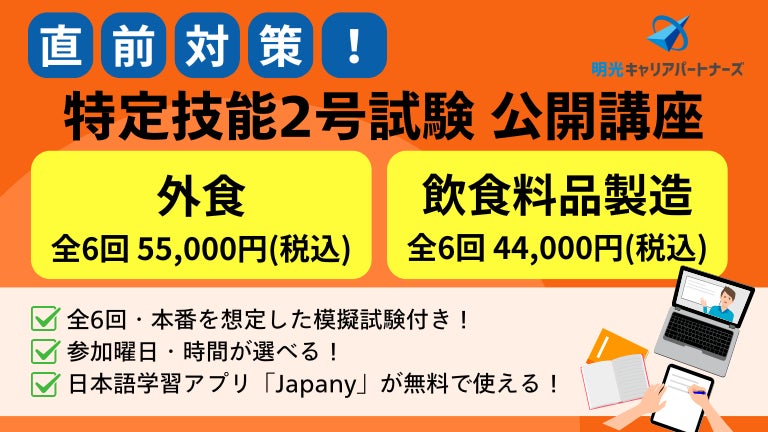 “明光式”直前対策【外食・飲食料品製造】特定技能2号試験 公開講座 お申し込み受付開始!