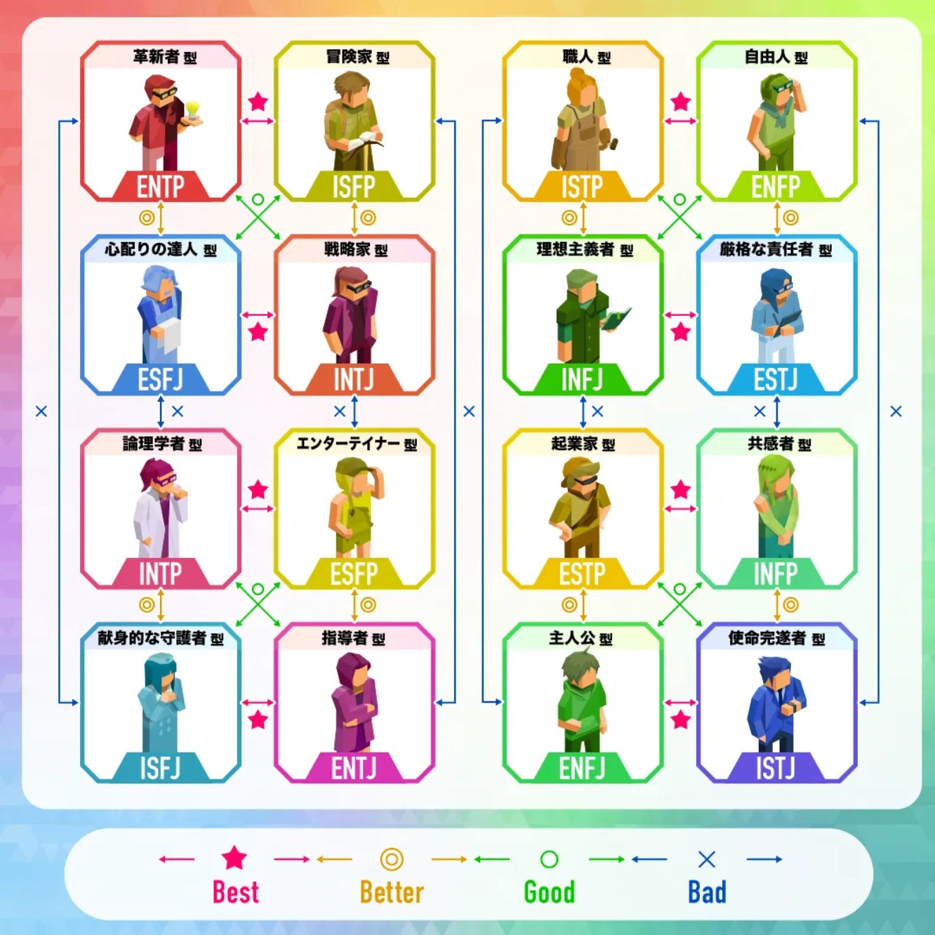 【2024年最新版】MBTI全16タイプの相性相関図を作成,公開しました!