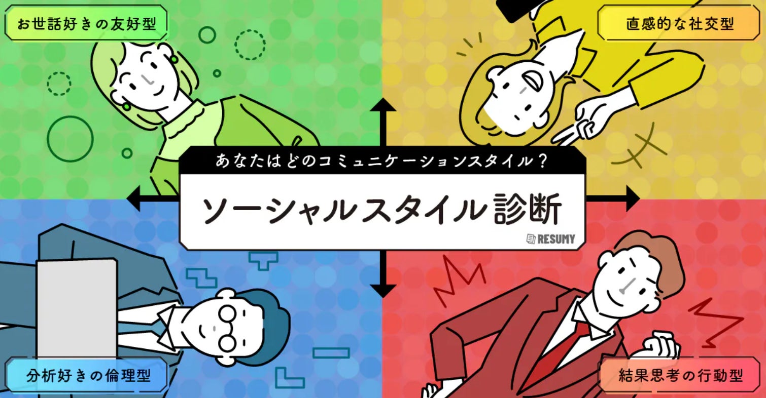 これまで16タイプ適性診断,RESUMY強み診断,ソーシャルスタイル診断など