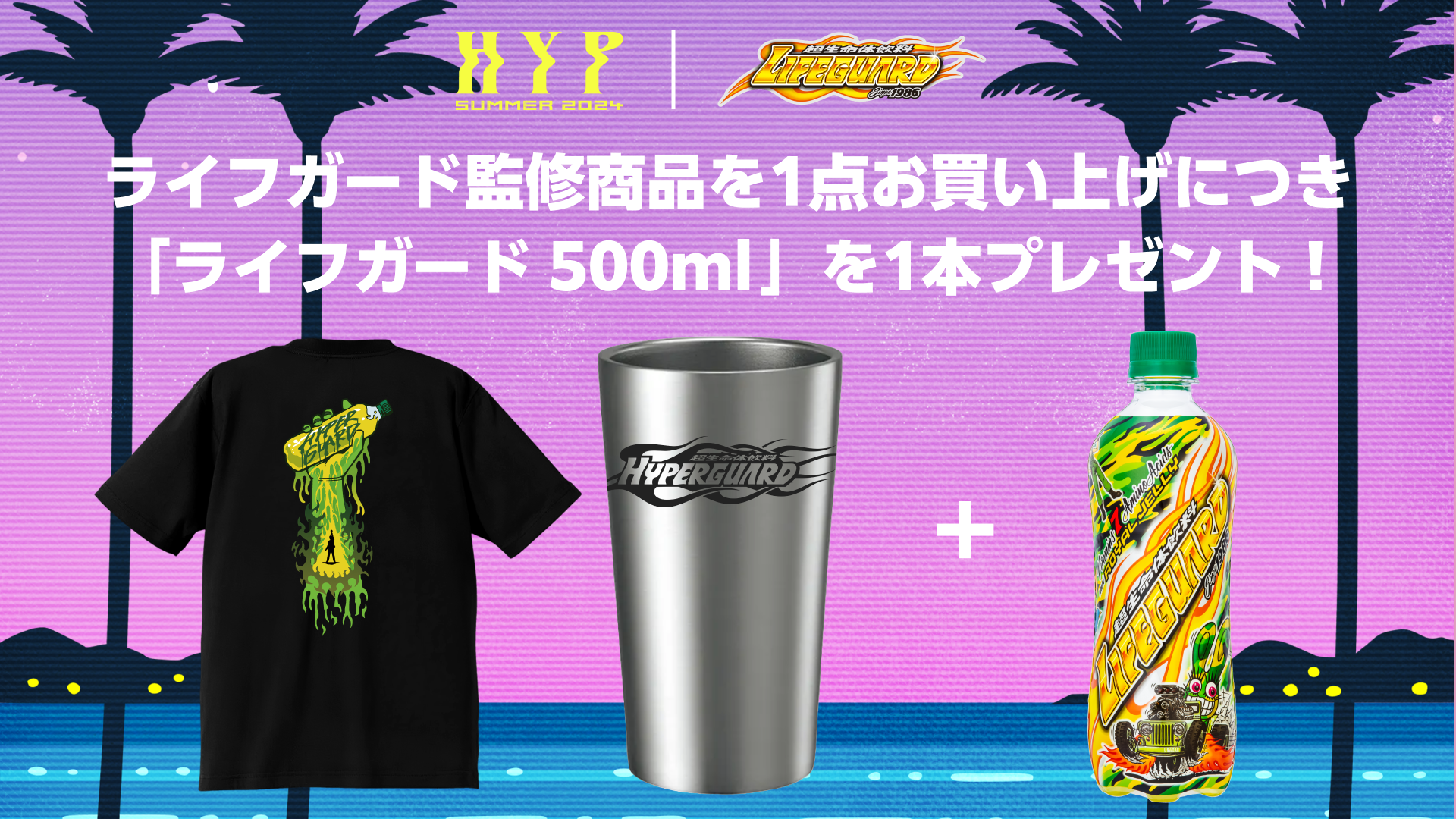 ライフガード監修商品を1点お買い上げにつき「ライフガード 500ml」1本をセットでプレゼントいたします。HYPとライフガードで2024年の夏をさらに楽しもう!