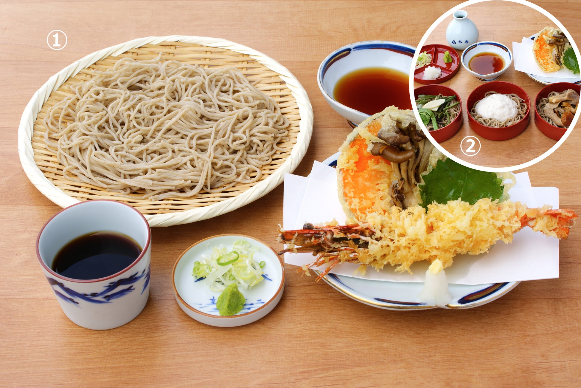 ①大海老天と舞茸の天ぷらざるそば(1人前) 2,300円