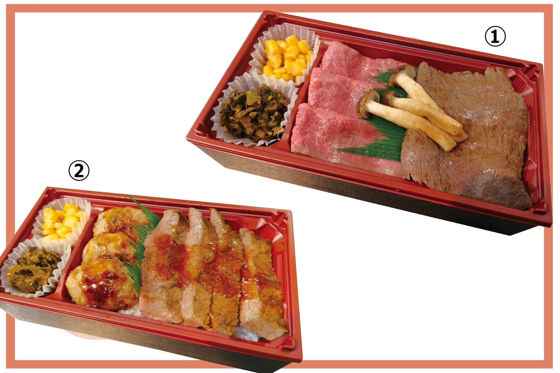 ①信州牛ローストビーフ&和牛ステーキ弁当(きのこ添え)(1折) 2,501円